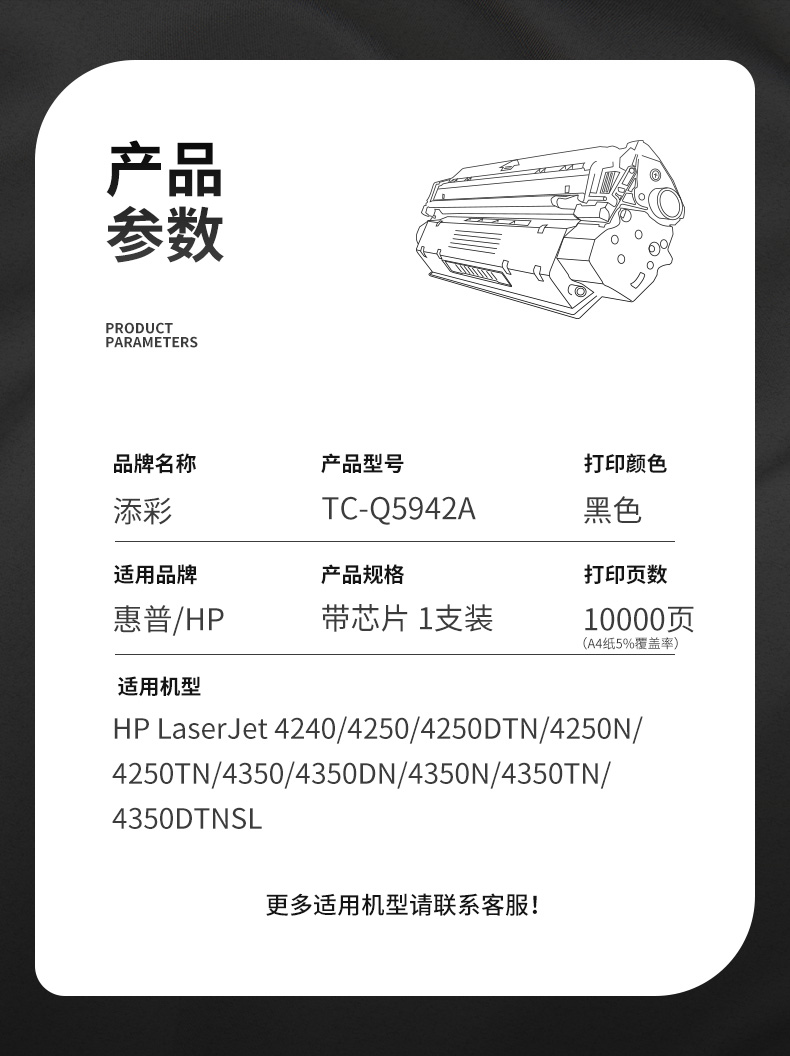 添彩TC-Q5942A商用装适用HP4240/4250/DTN/N打印量10000页 激光碳粉盒 支 黑色