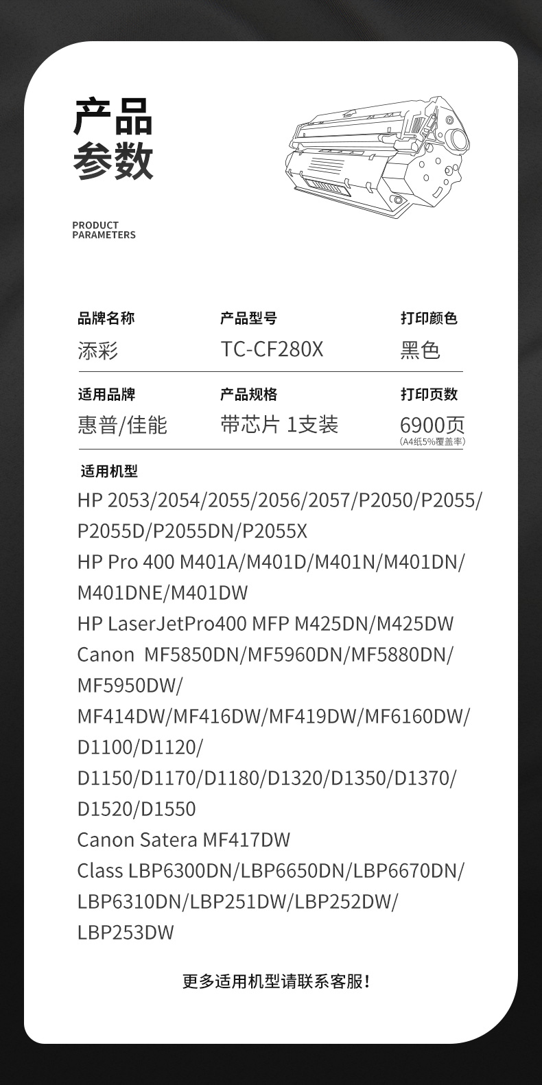 添彩TC-CF280X商用装适用HP 400 M401/a/n打印量6900页 激光碳粉盒 支 黑色