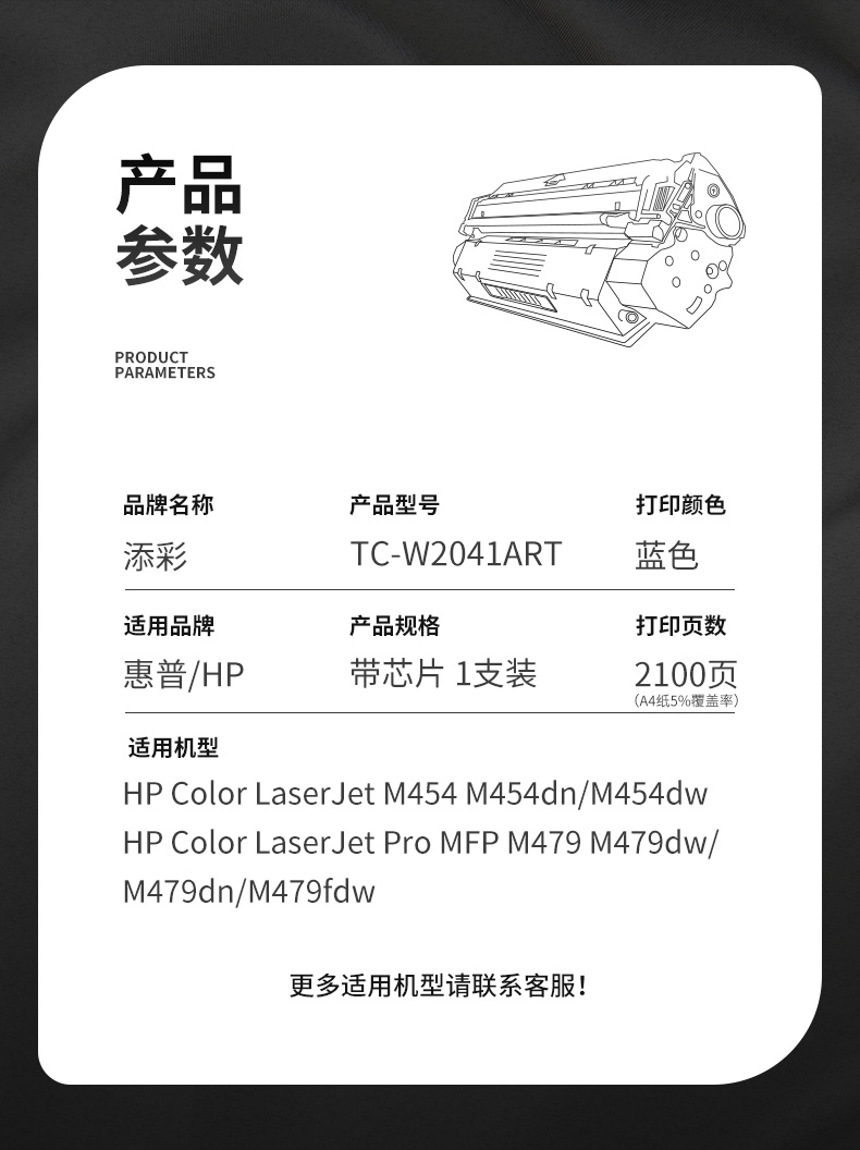 添彩TC-W2041ART商用装适用HP M454/dn/dw打印量2100页 激光碳粉盒 支 蓝色