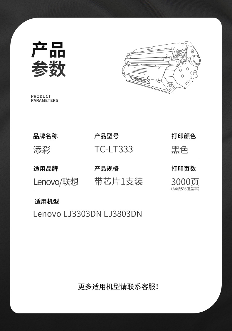 添彩TC-LT333商用装适用联想LJ3303DN LJ3803DN打印量3000页激光碳粉盒 支 黑色