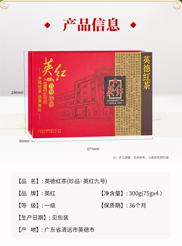 英红 珍品九号礼盒 300克(75克*4)/盒 有机英德红茶