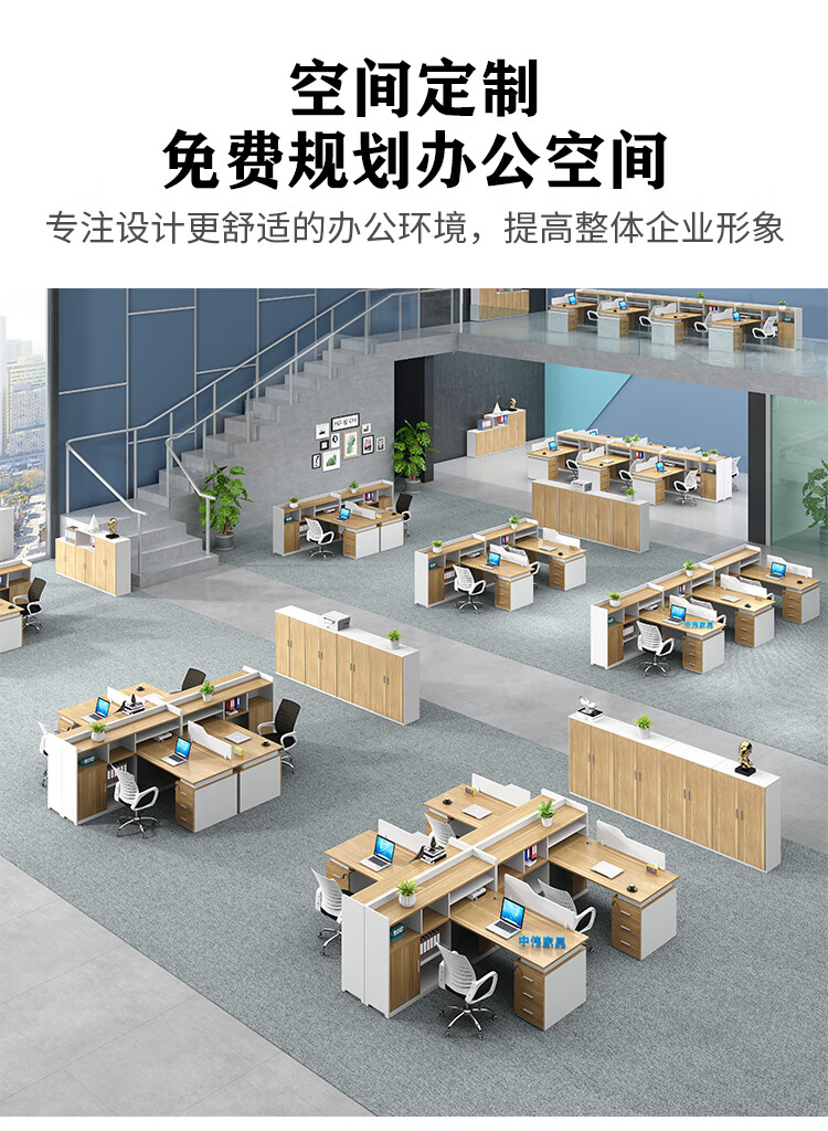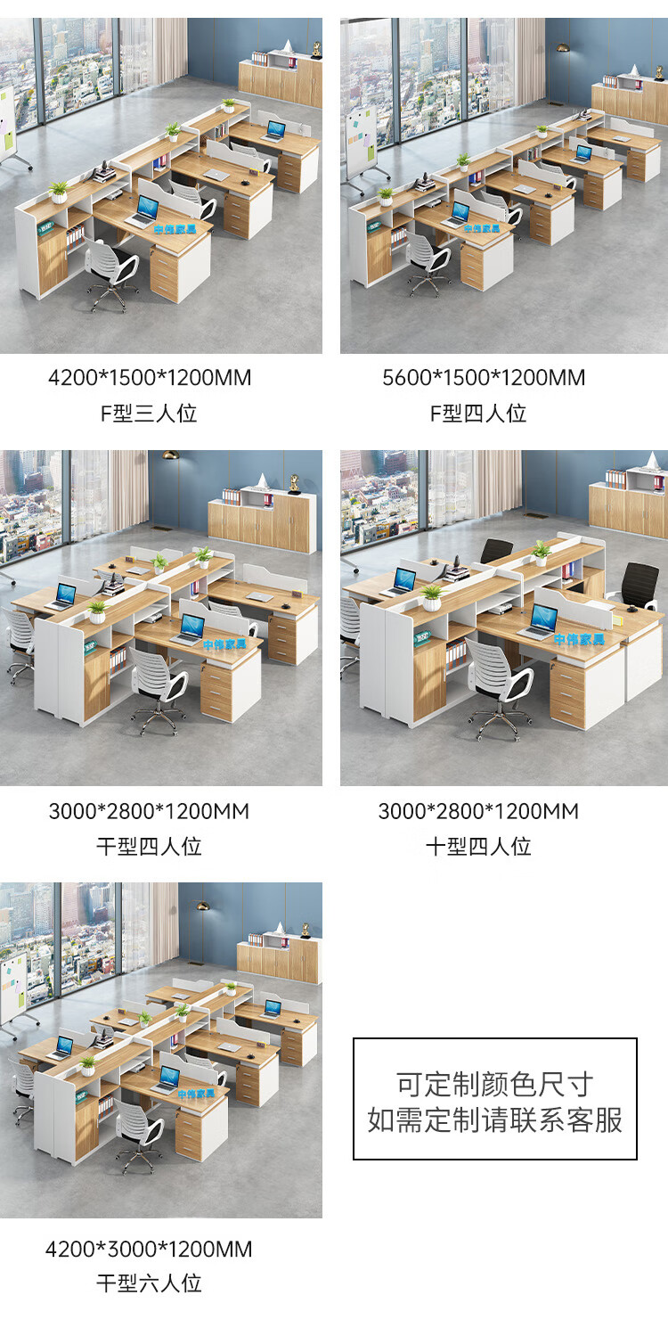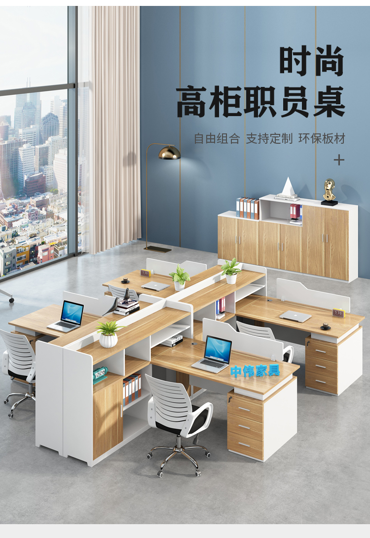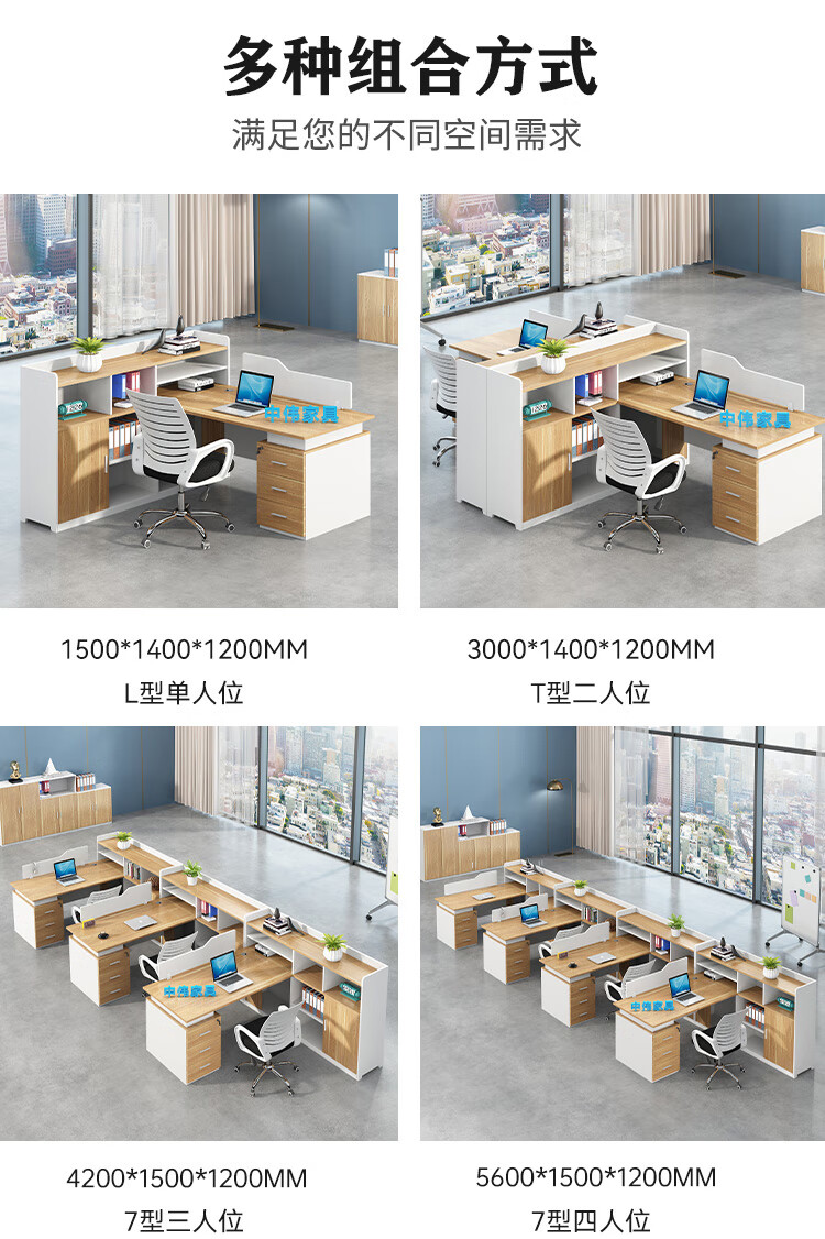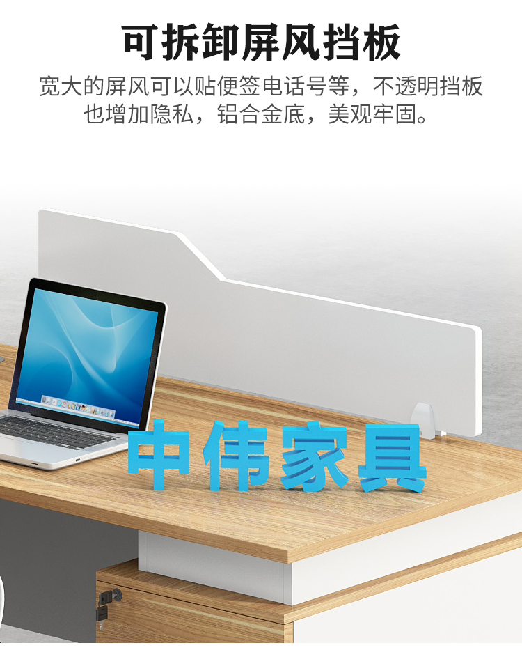 中伟职员办公桌椅组合屏风工作台电脑桌隔断卡座T型2人位含椅子 单位:张 自然色