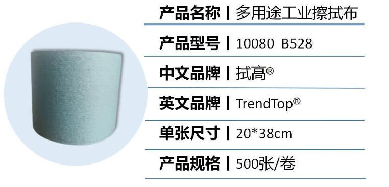 TrendTop 多用途工业擦拭布 B528 20*38cm 500张/卷 擦拭纸 单位:卷 天蓝色