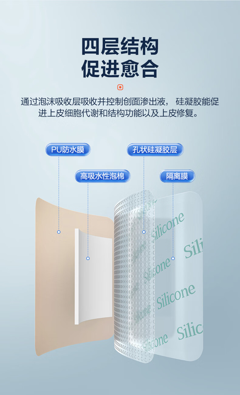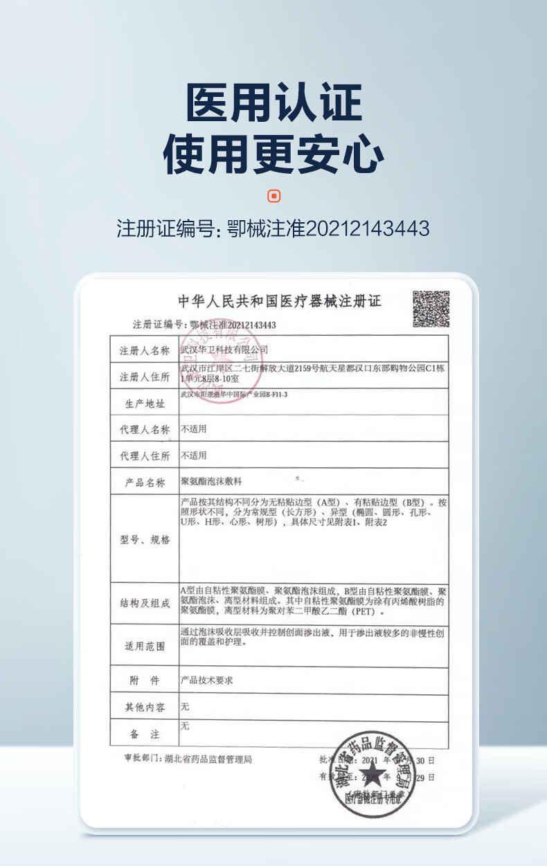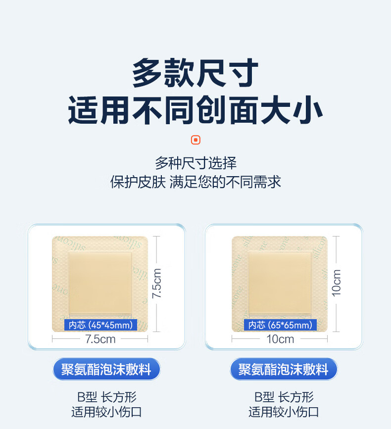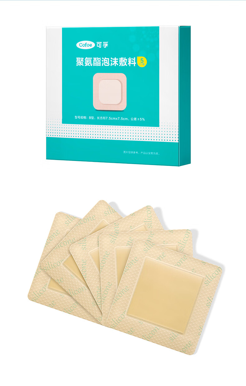 可孚聚氨酯泡沫敷料 防压疮伤口敷贴 B型,长方形10cmX10cm,5片/盒*1盒 极光色