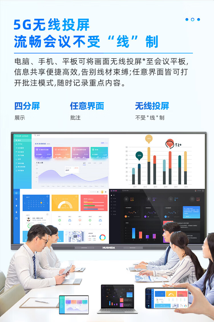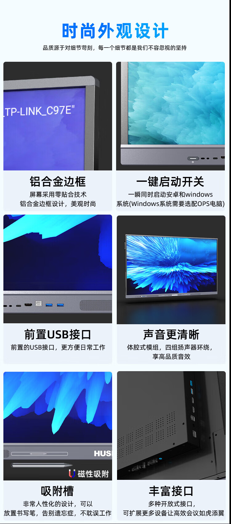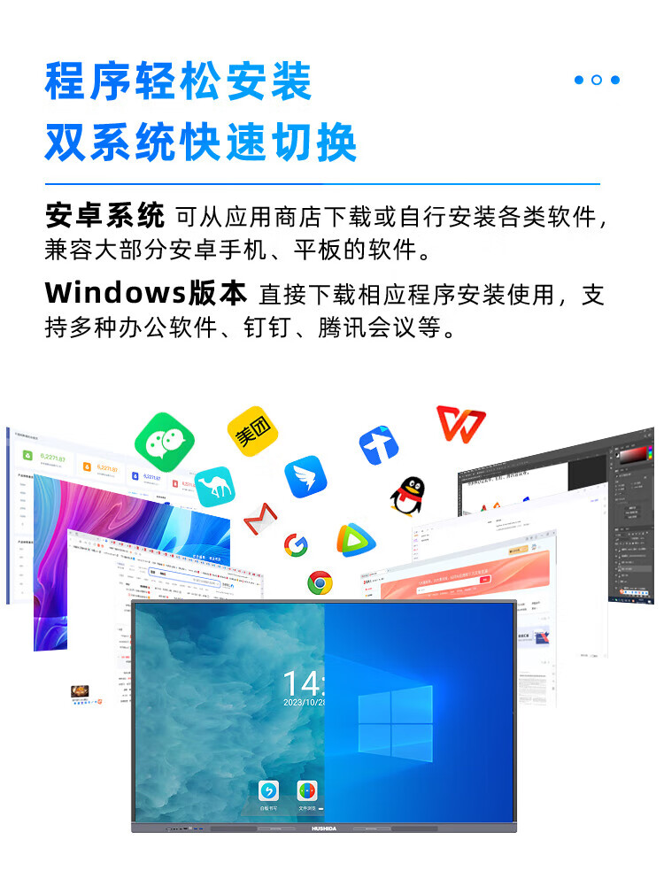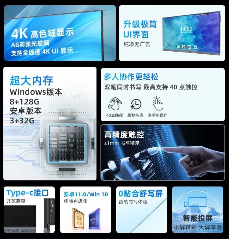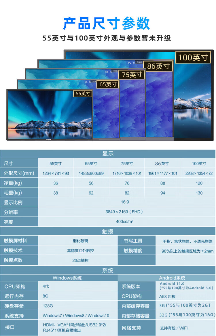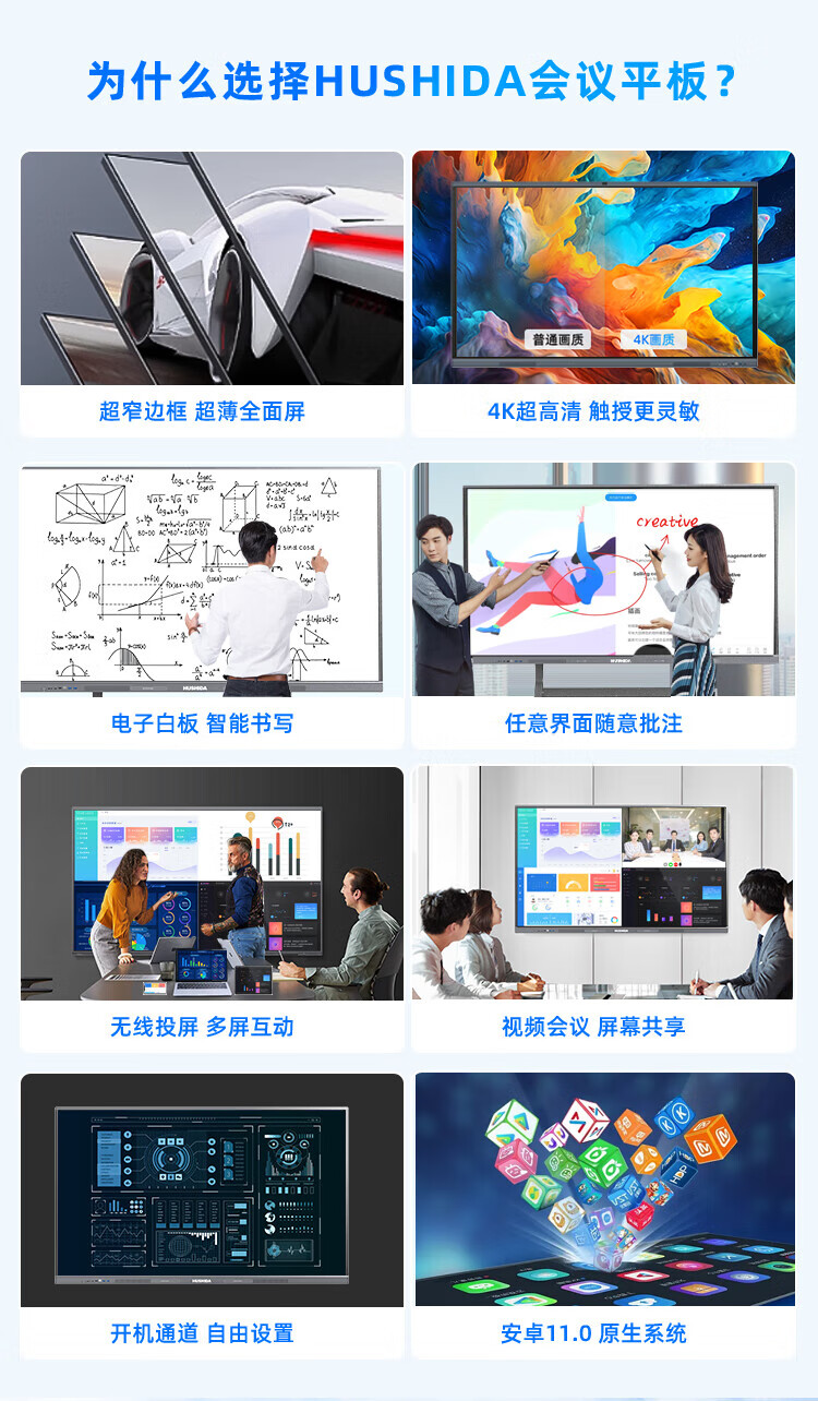 互视达65英寸会议平板多媒体教学一体机窗触控电子白板4K防眩光+双系统i7-8G-2T套装 单位:台 星河银