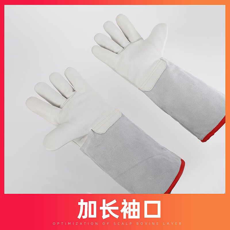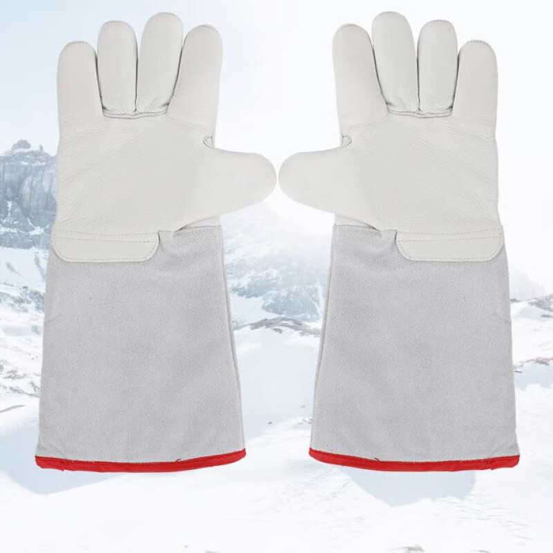 鸣固防冻手套 牛皮耐低温防液氮手套冷库劳保手套防寒抗冻手套40cm(单位:双) 白色