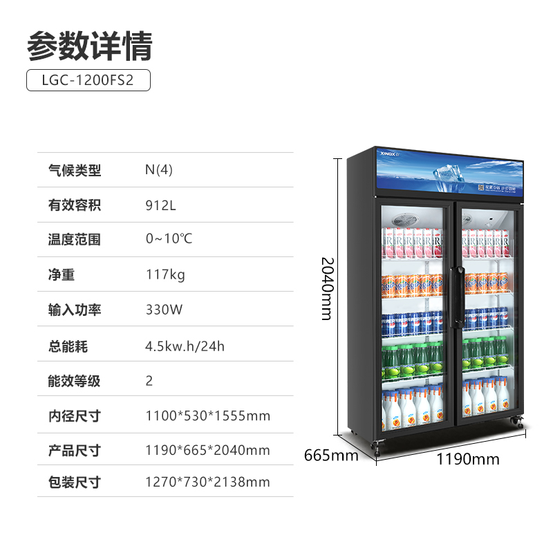 星星(XINGX) LGC-1200FS2 1200升展示柜商用立式两门冷藏展示柜 直冷 定频 黑色