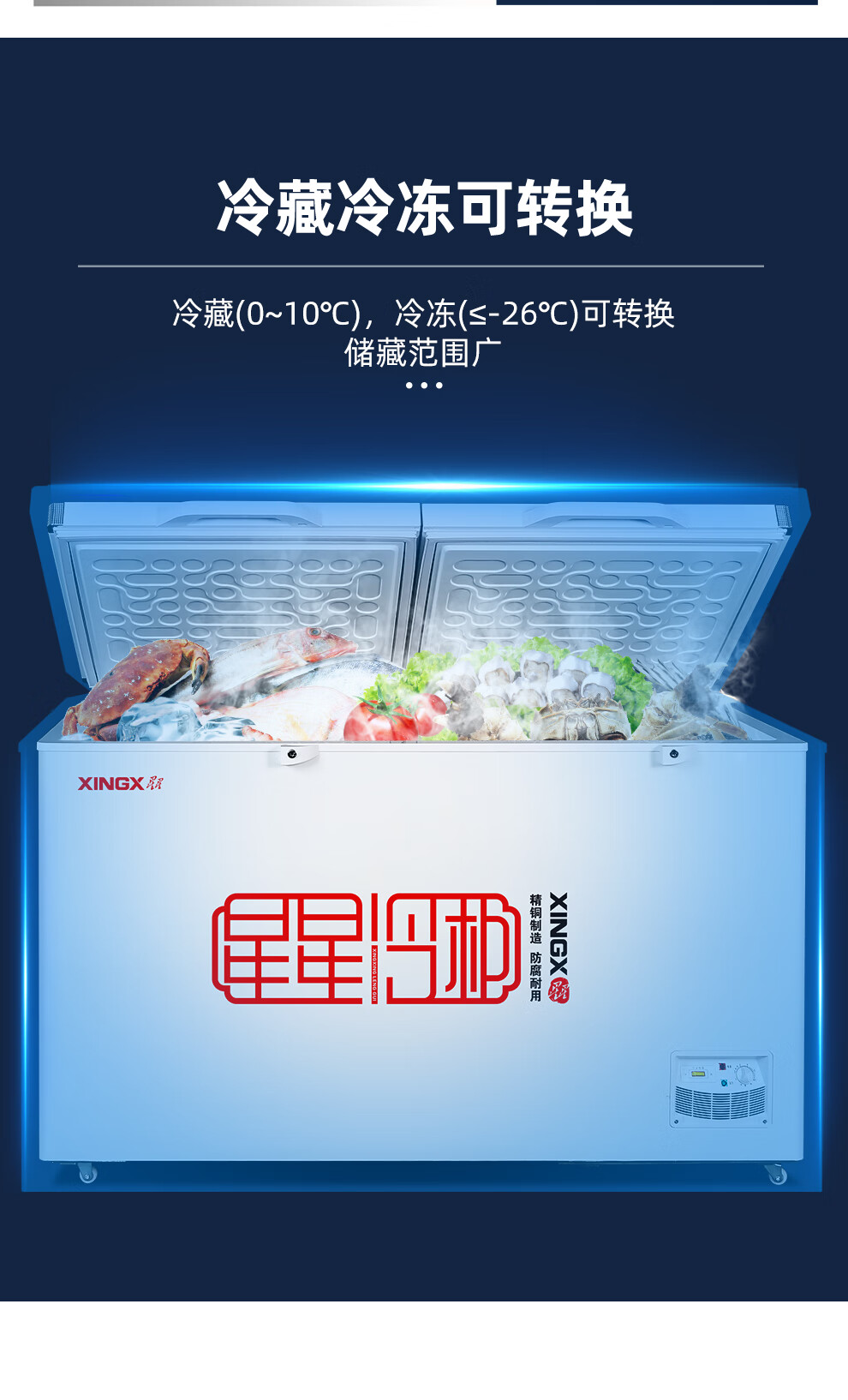星星(XINGX) BD/BC-618GD 618升大容量卧式冷柜冷藏冷冻转换 单位:台 白色 白色