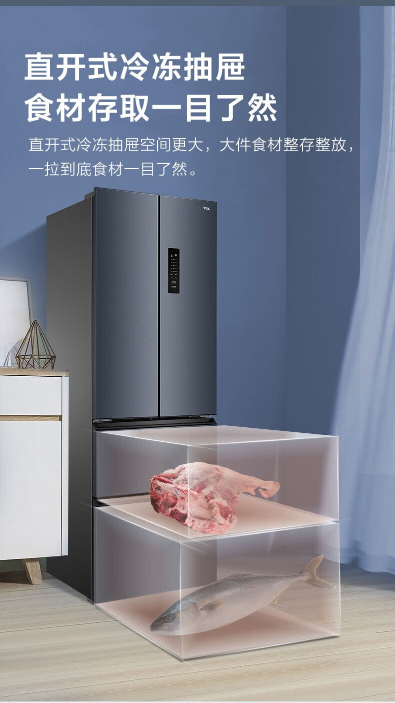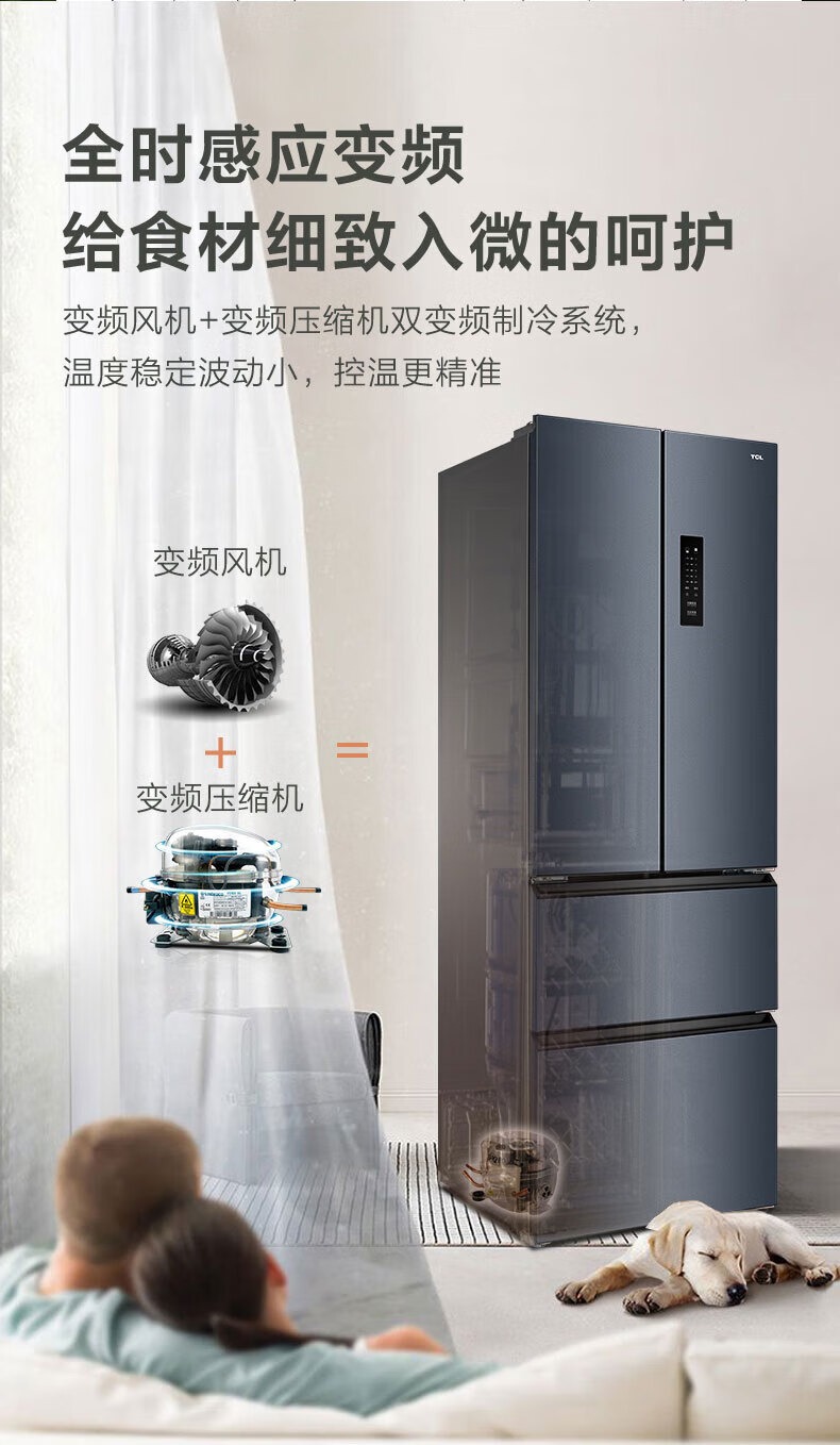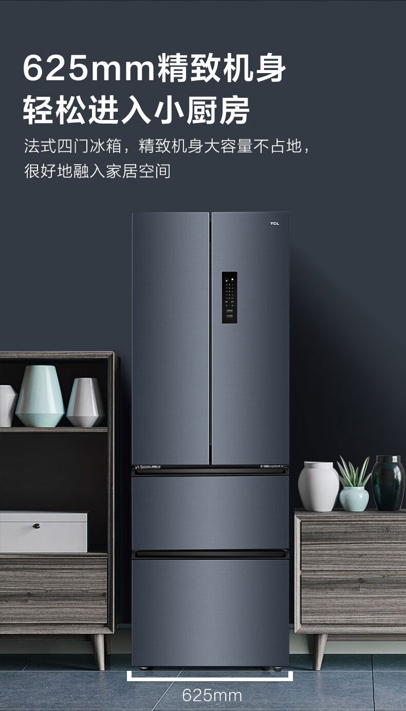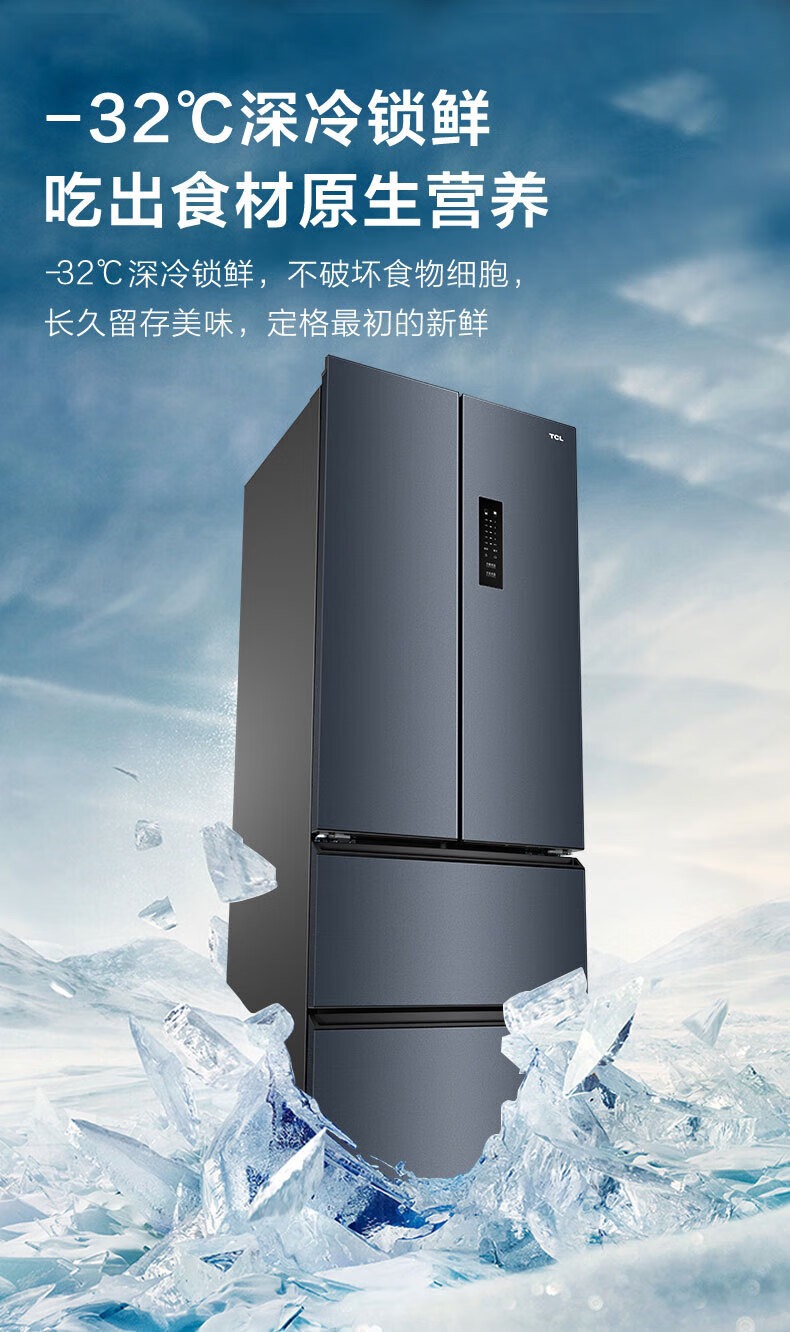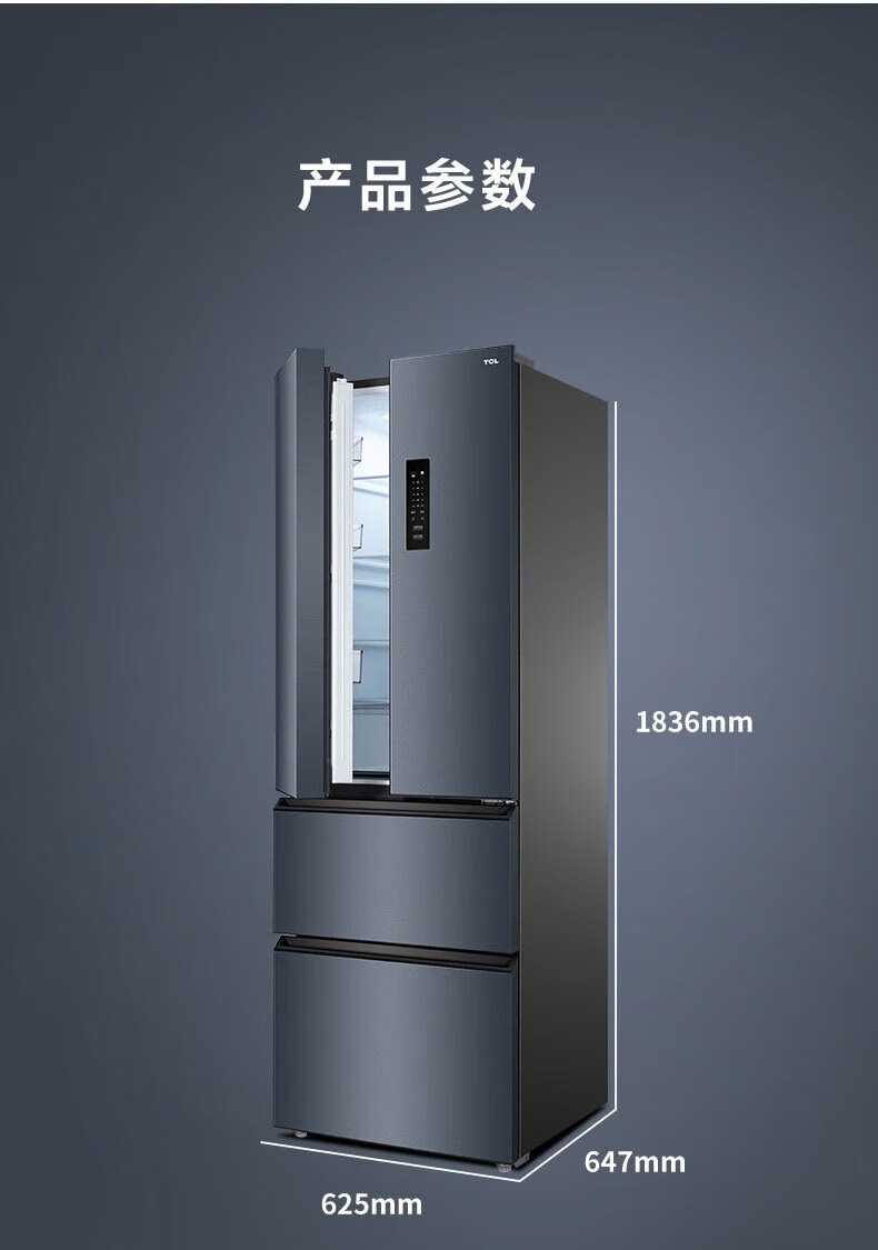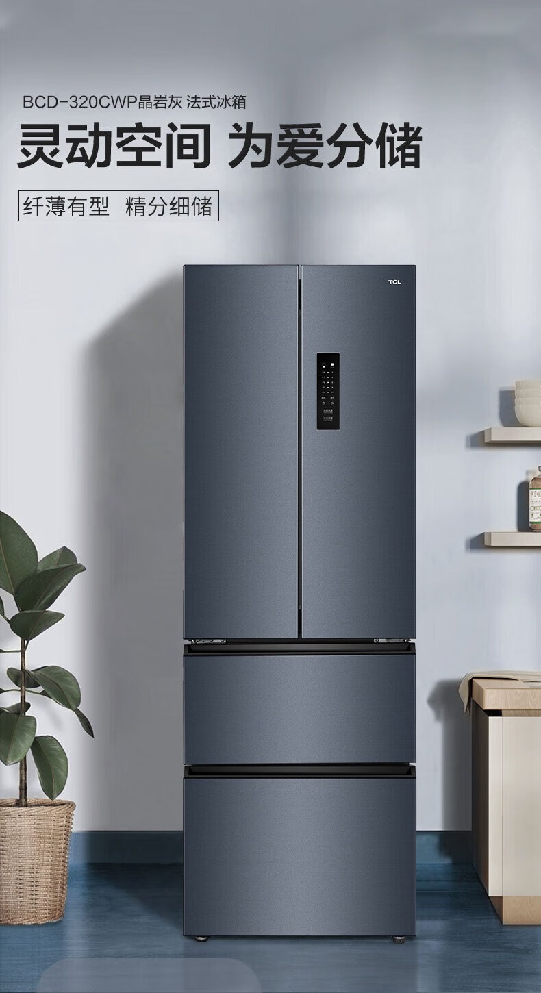 TCL BCD-320CWP 对开门电冰箱320升风冷三挡变温变频一级能效 单位:台 银灰色 银灰色