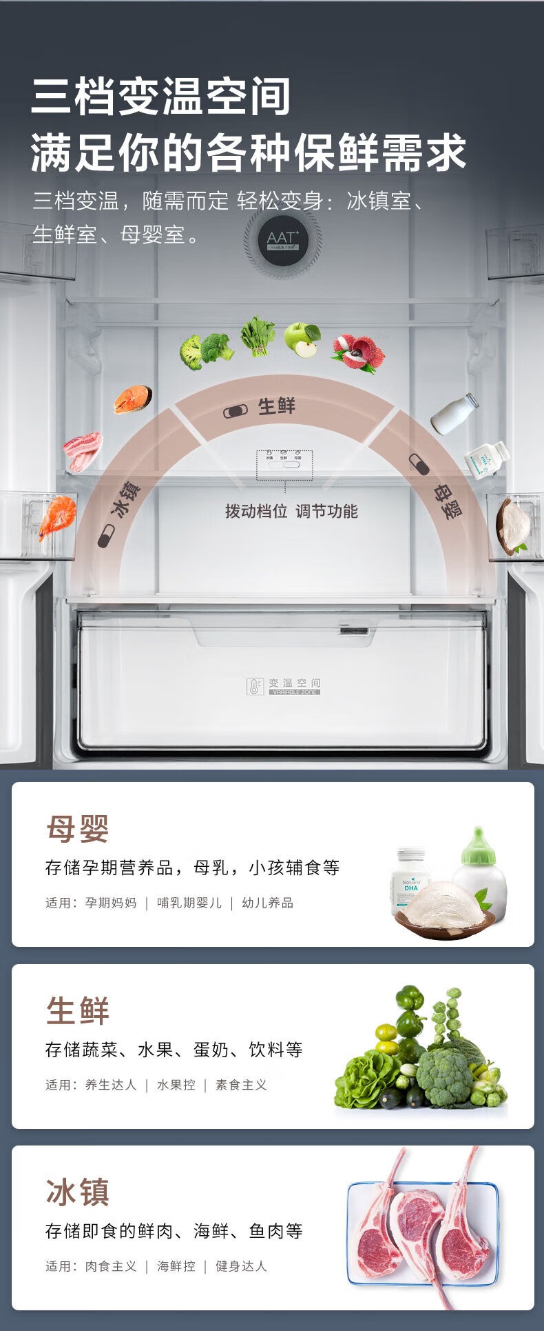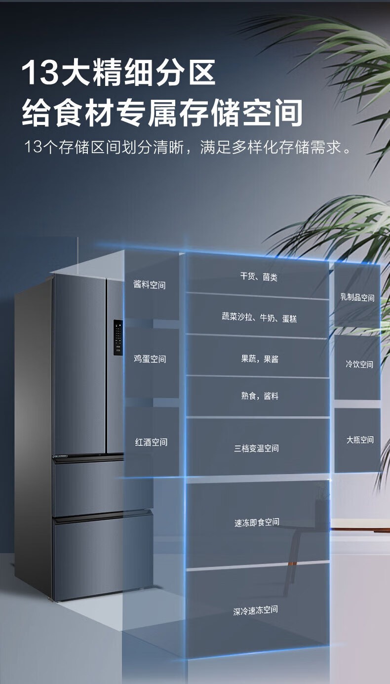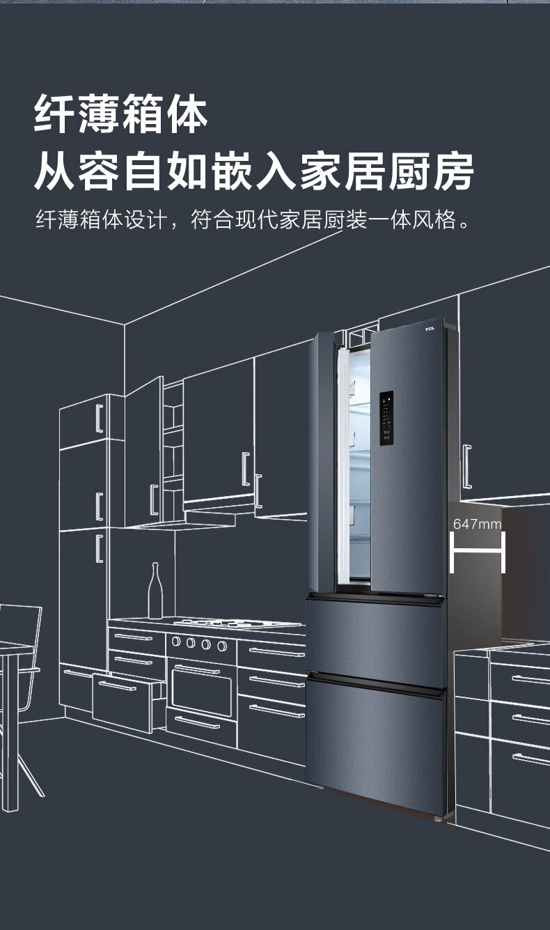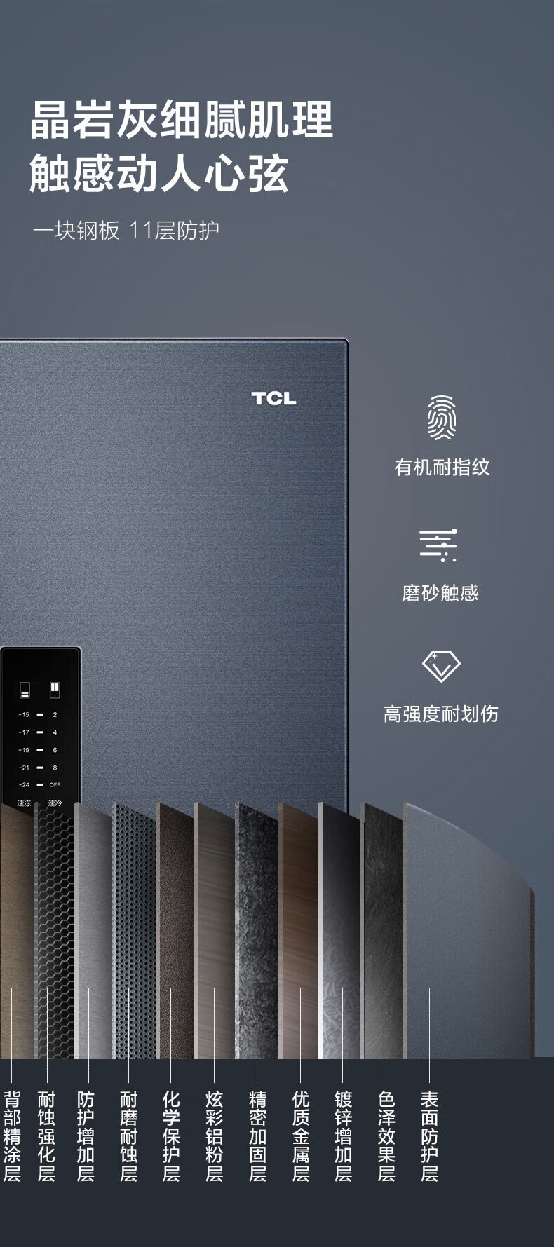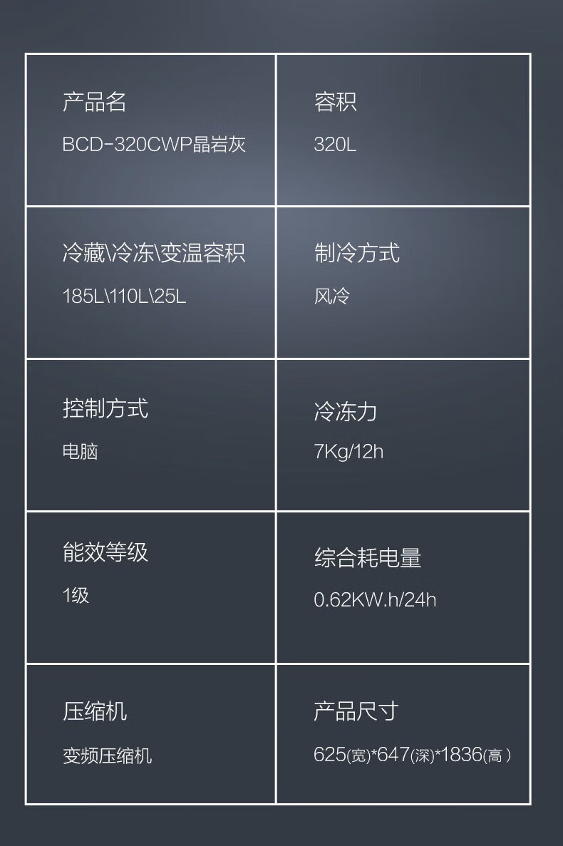 TCL BCD-320CWP 对开门电冰箱320升风冷三挡变温变频一级能效 单位:台 银灰色 银灰色