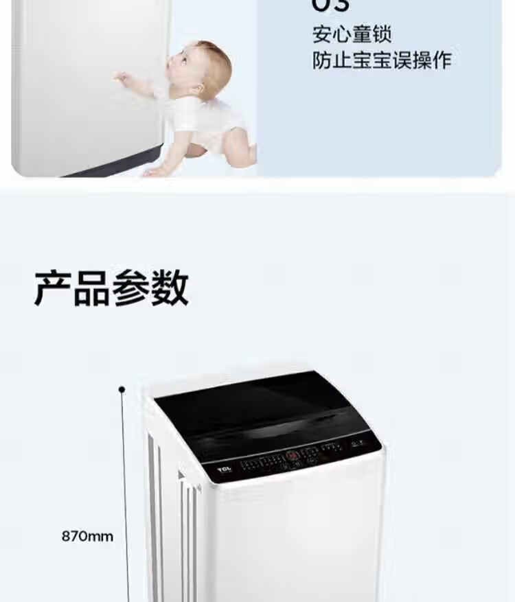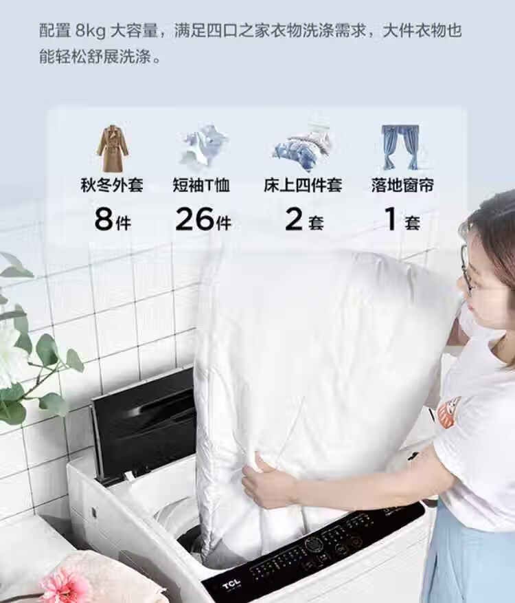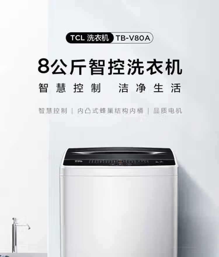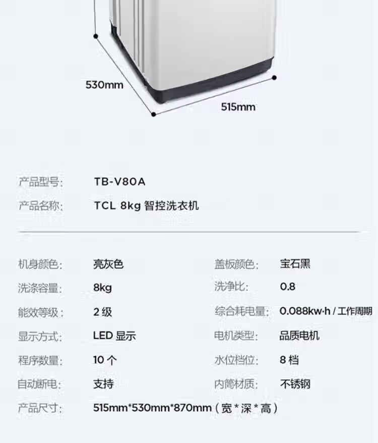 TCL TB-V80A 洗衣机波轮8公斤定频三级能效下排水 单位:台 亮灰色 灰色