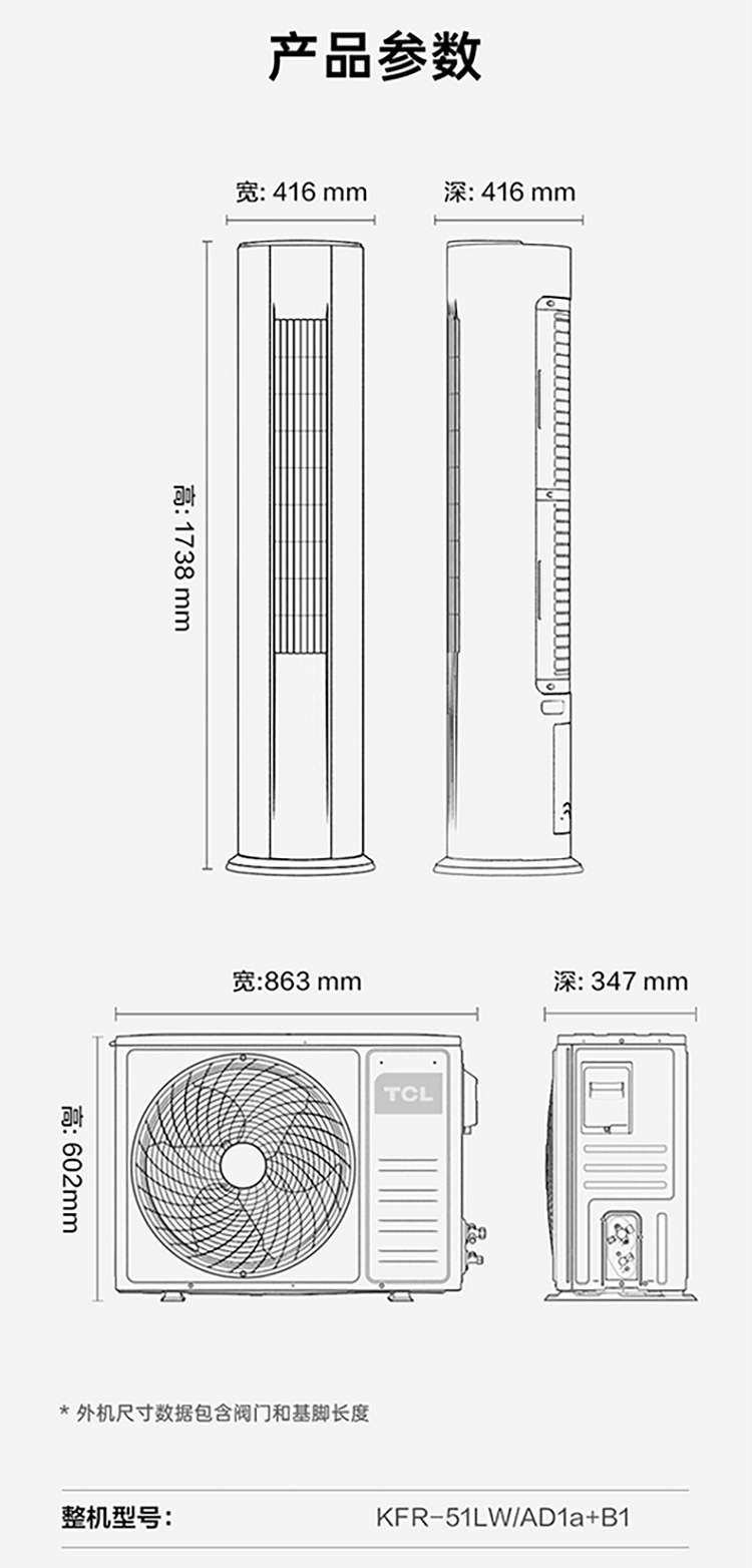 TCL KFR-51L/AD1a+B1 2匹立式圆柱空调(标准安装) 单位:台 白色 白色