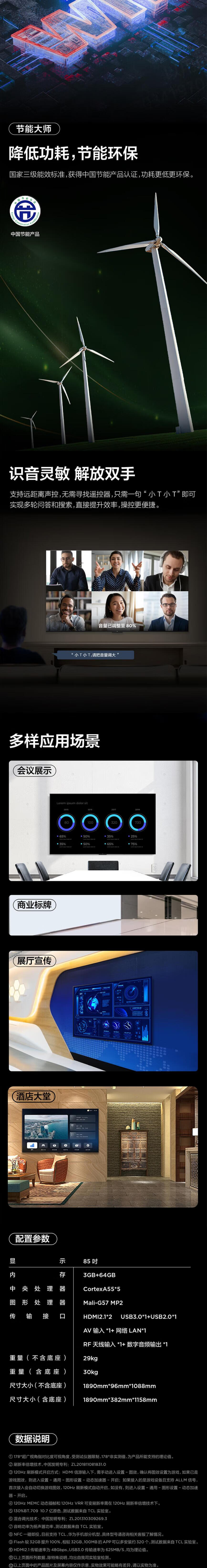 TCL 85G60E 超高清4K智能电视机85英寸 130%BT.709原色高色域120Hz单位:台 黑色