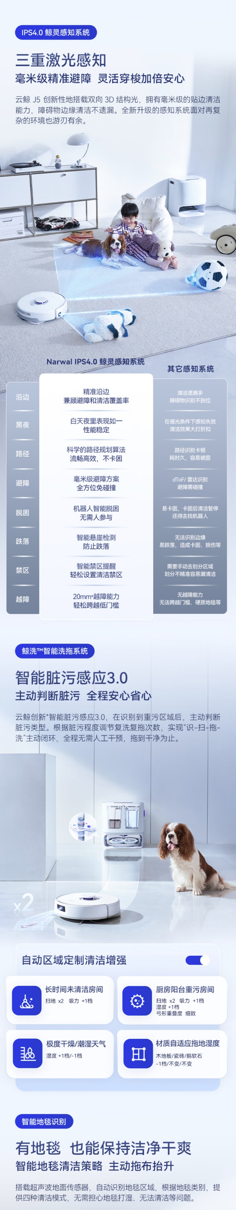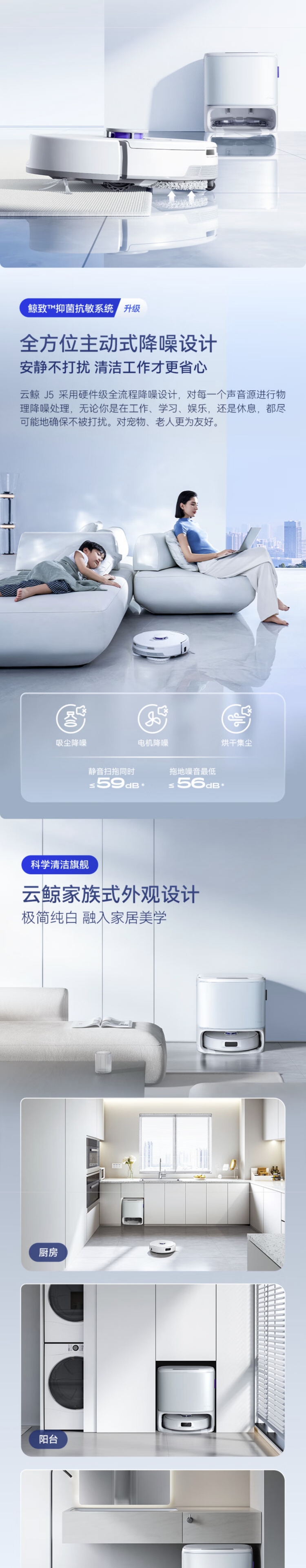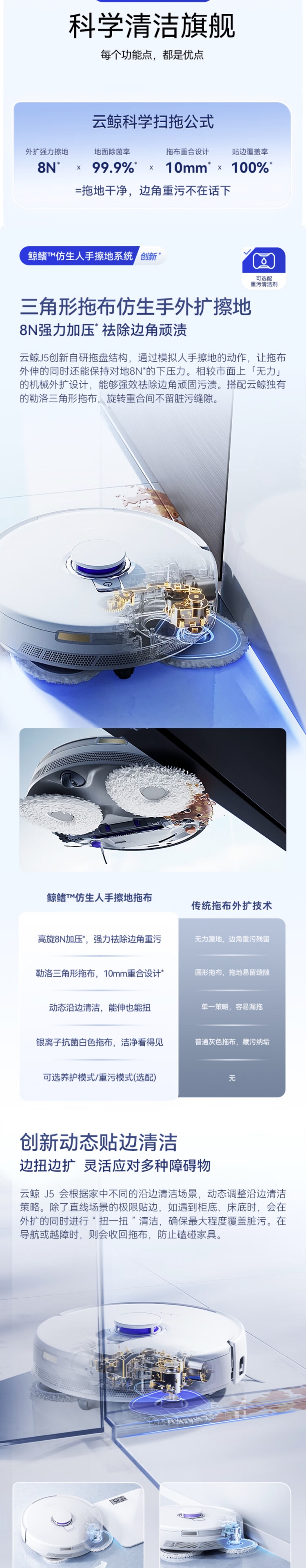 云鲸NARWAL智能扫拖一体扫地机器人J5 水箱版 白色(单位:台) 白色
