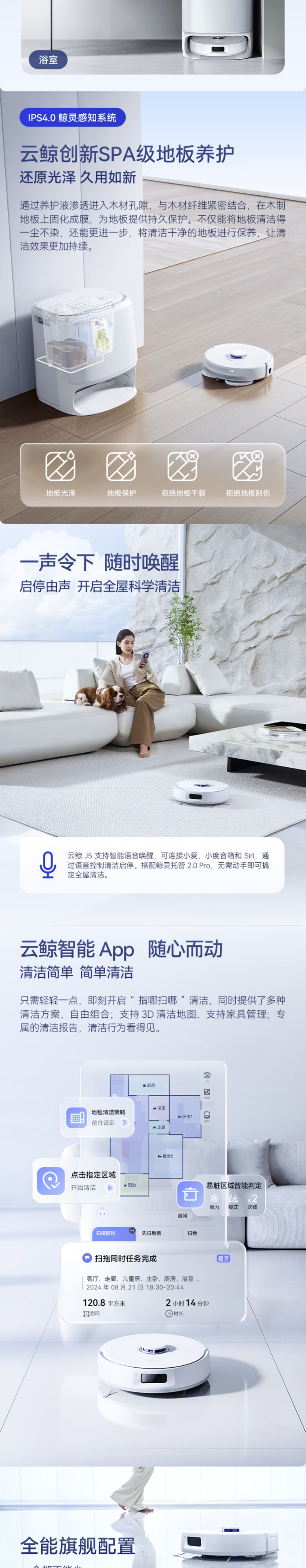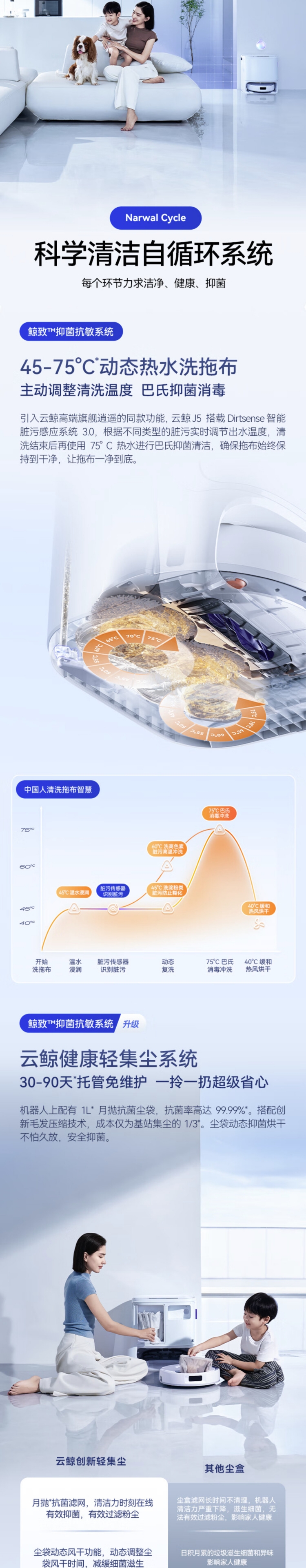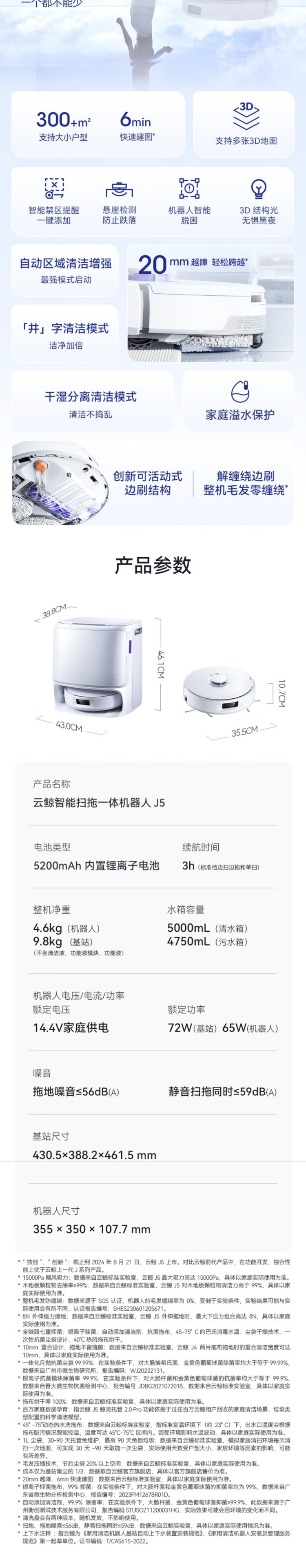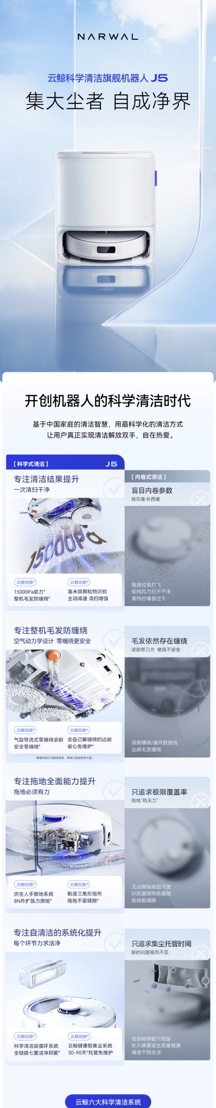 云鲸NARWAL智能扫拖一体扫地机器人J5 水箱版 白色(单位:台) 白色