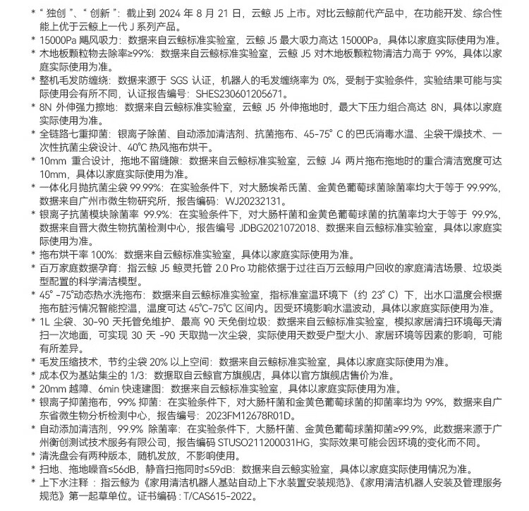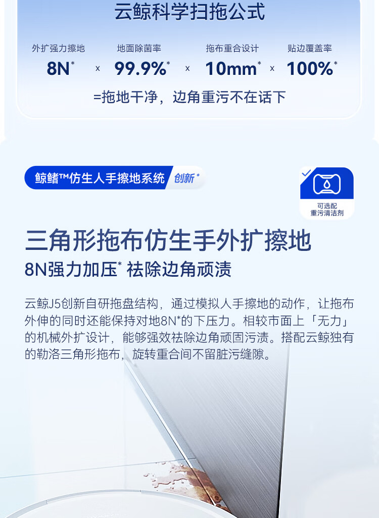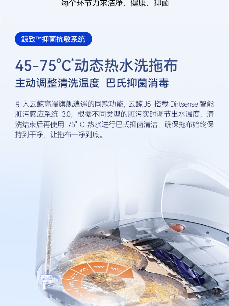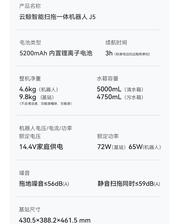 云鲸(NARWAL)智能扫拖一体扫地机器人J5上下水版 白色(单位:台) 白色
