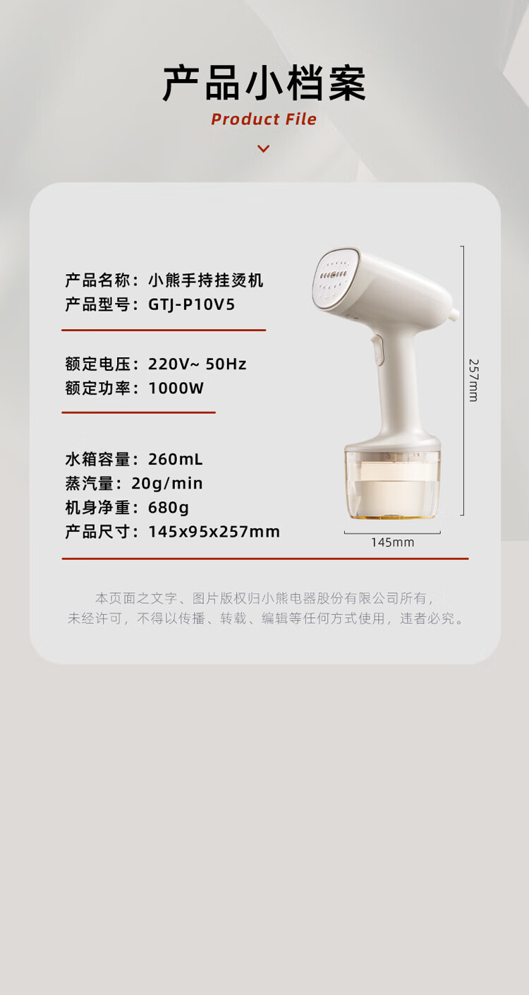 小熊(Bear)挂烫机电熨斗【ZMD安心系列】GTJ-P10V5 (单位:台) 象牙白色