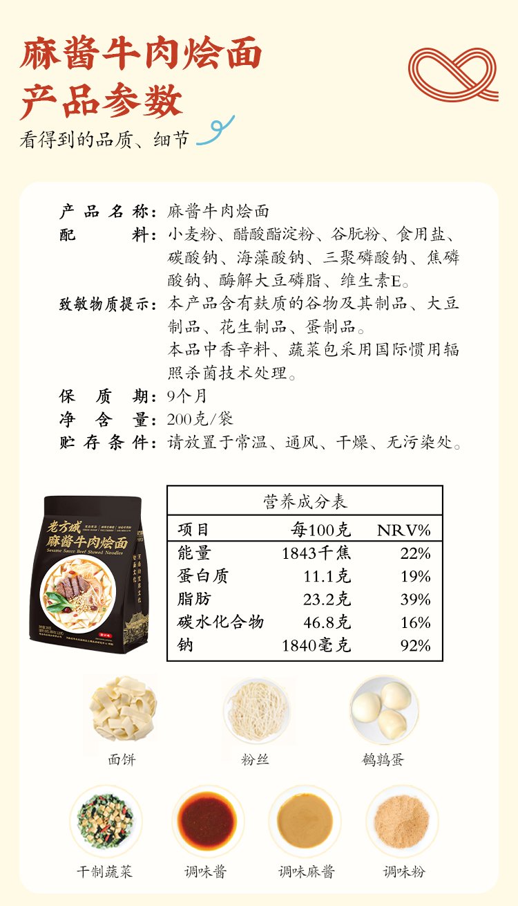 想念老方城麻酱牛肉烩面200g*3袋 曜石黑