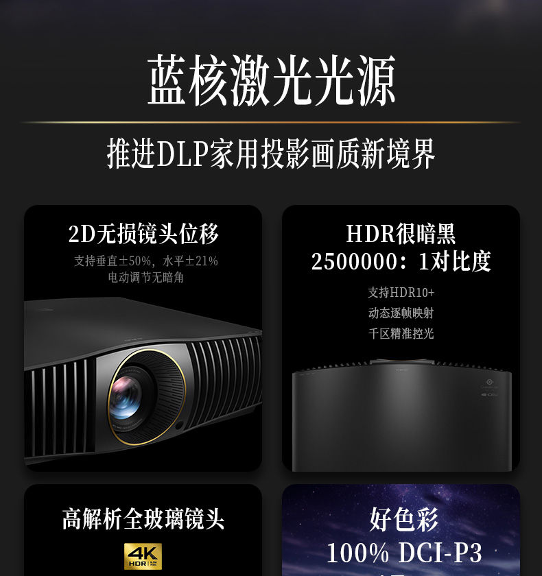 明基(BenQ)W6000L 家用 投影机 投影仪 4K 色准家庭影院 灰蓝色