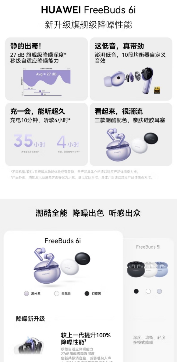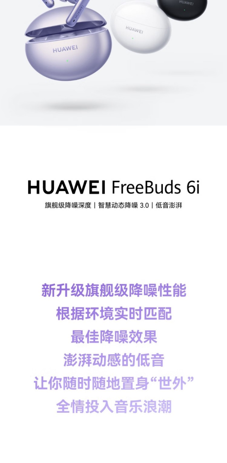 华为(HUAWEI)FreeBuds 6i 真无线降噪蓝牙耳机 旗舰级降噪深度(单位:台) 天际白