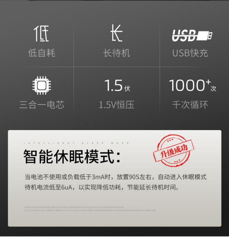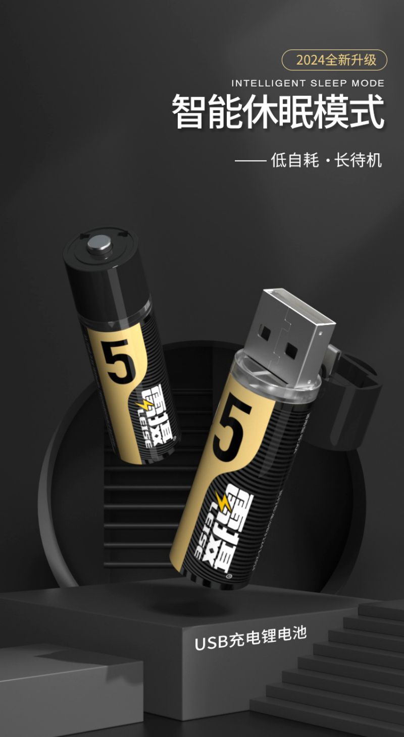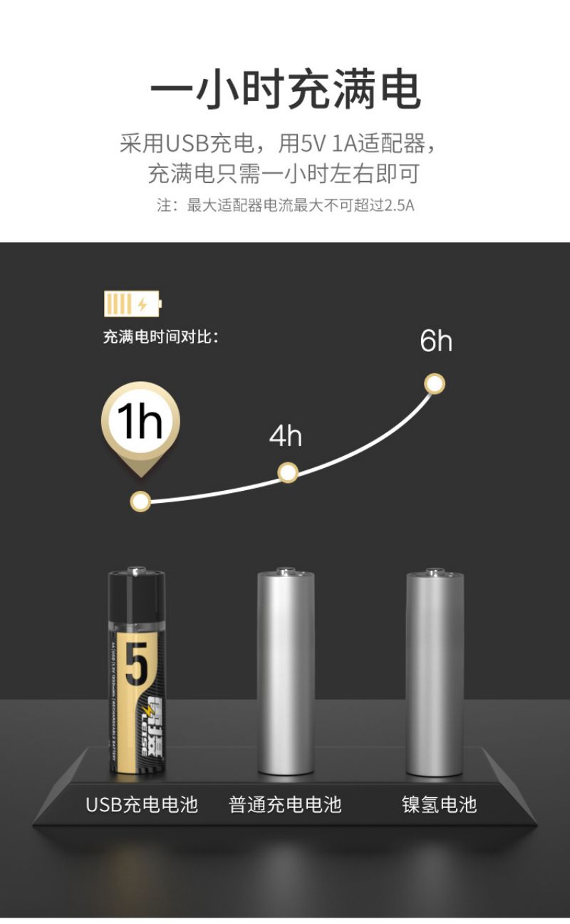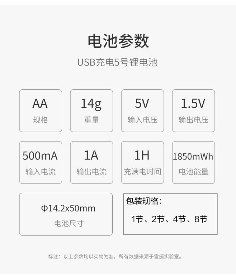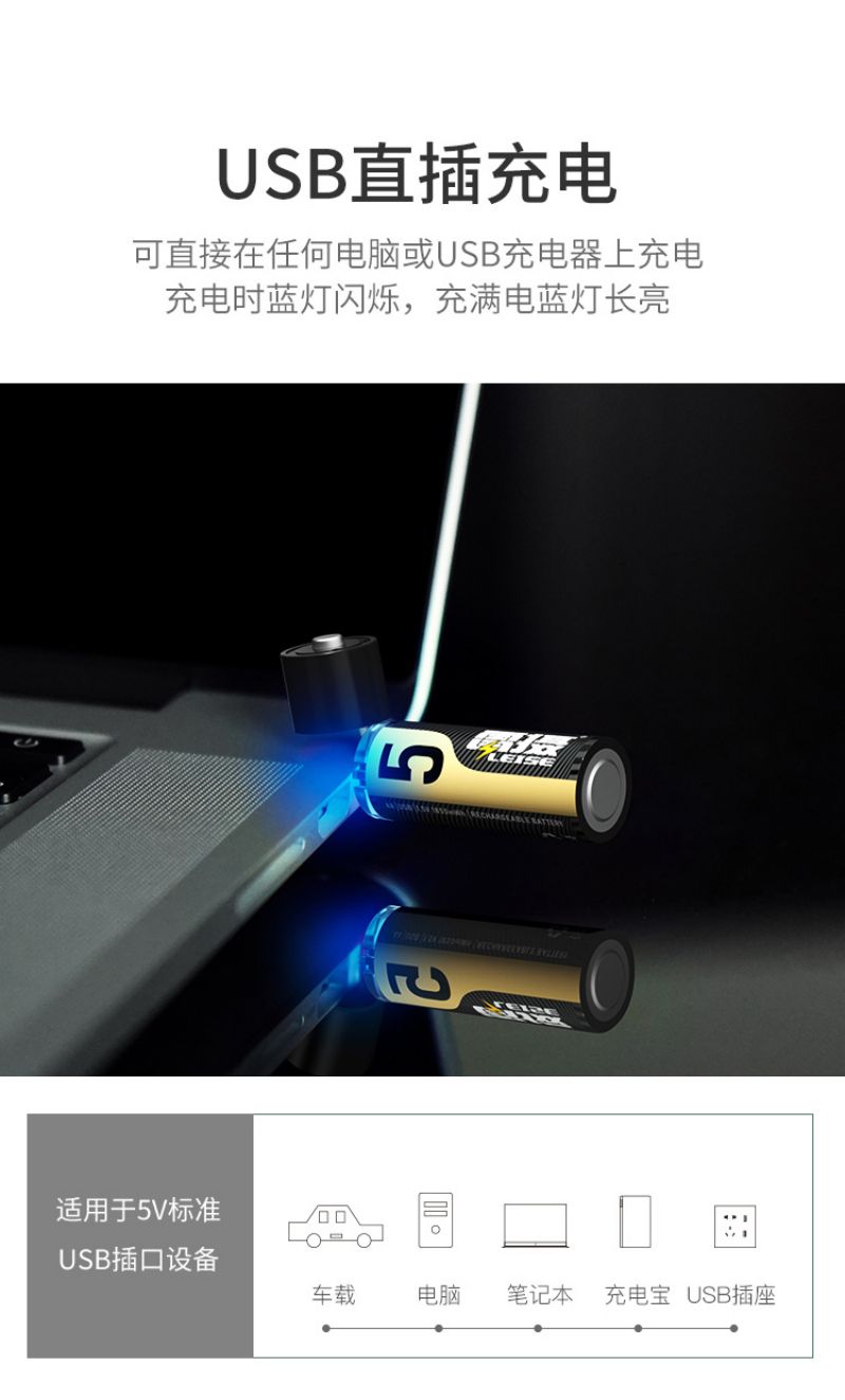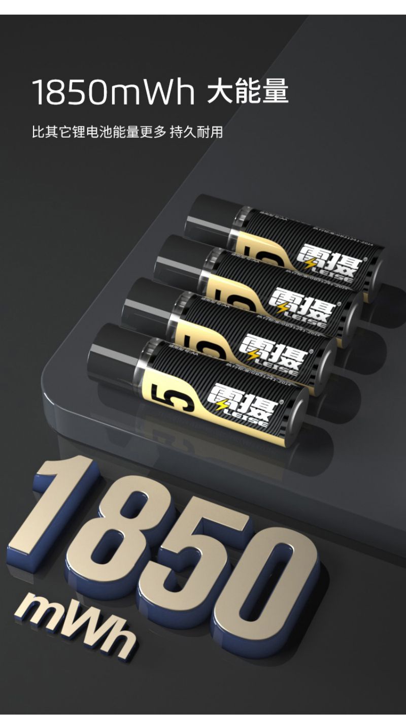 雷摄(LEISE) 5号 1850mWh*1节 1.5v恒压AA 充电锂电池大容量快充 黑色(单位:节)