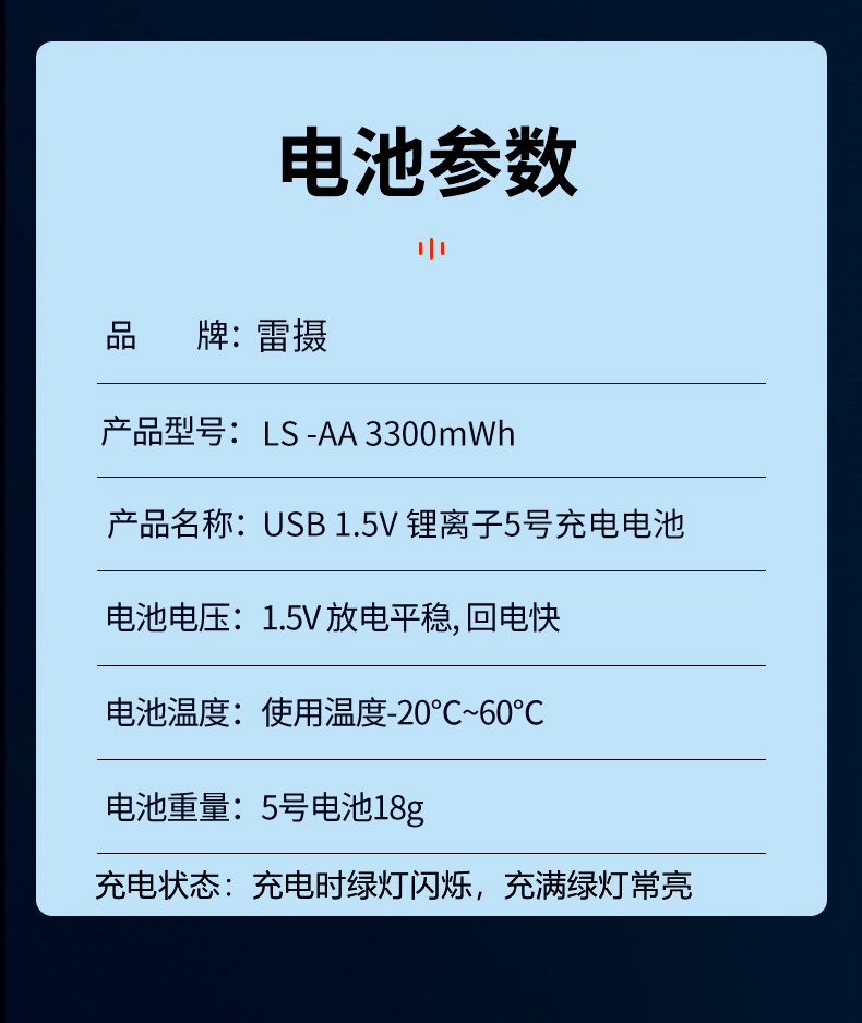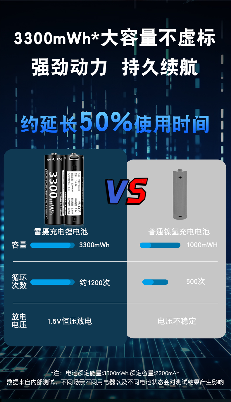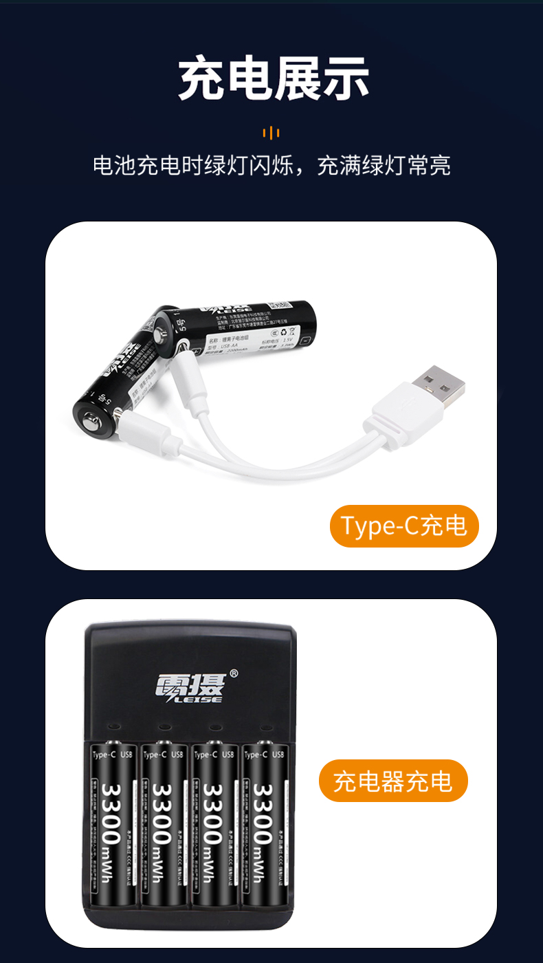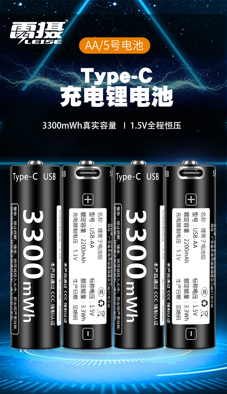 雷摄(LEISE) 5号 3300mWh( 2节) Type-C充电电池 黑色(单位:块)