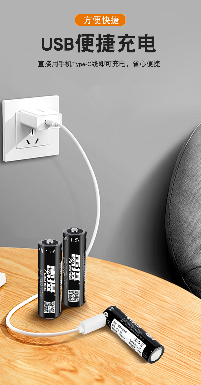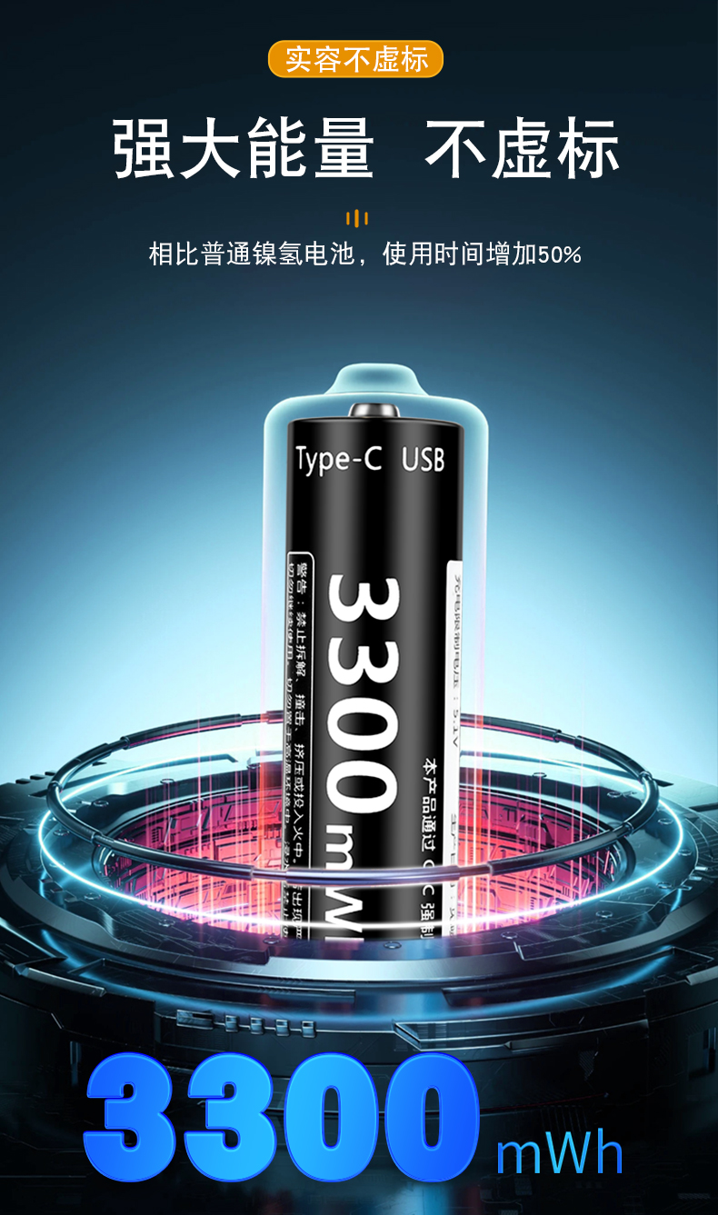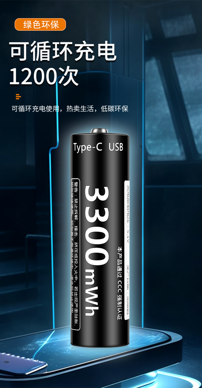 雷摄(LEISE) 5号 3300mWh( 2节) Type-C充电电池 黑色(单位:块)