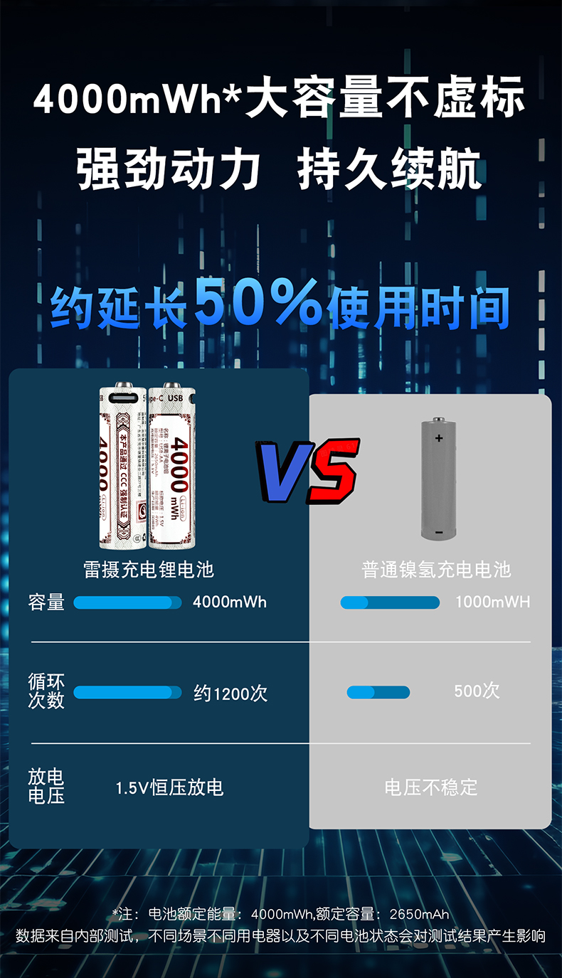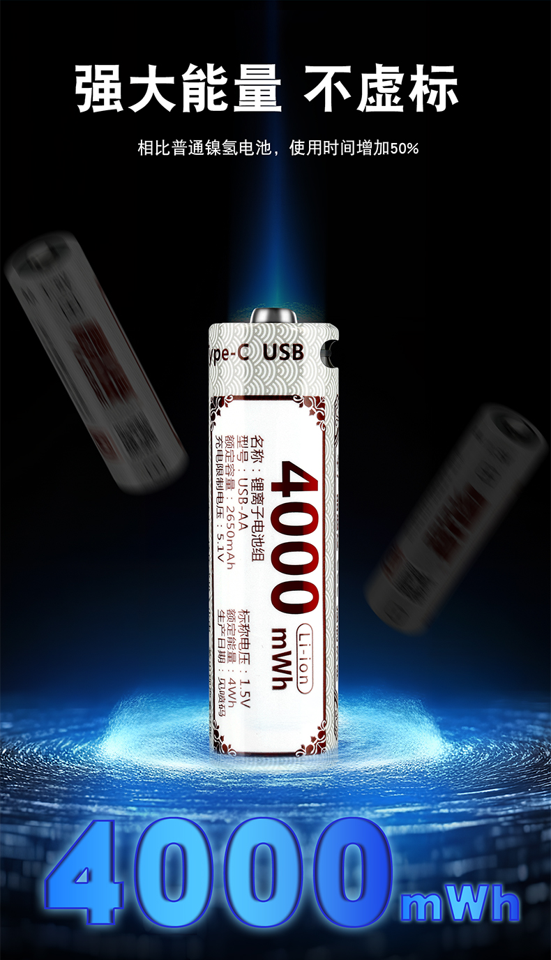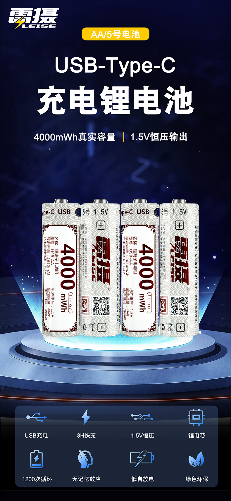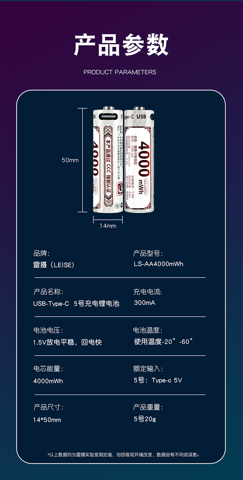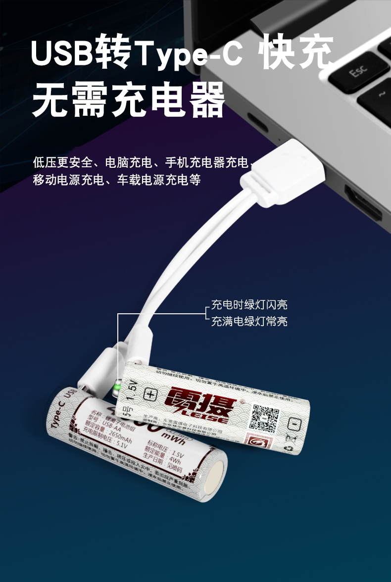 雷摄(LEISE) 5号 4000mWh(1节) Type-C充电电池 白色(单位:块)