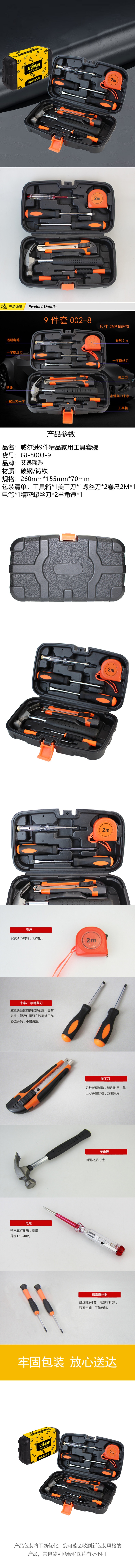 艾逸瑶选 GJ-8003-9 9件套 精品家用工具套装 黑色(单位:套)