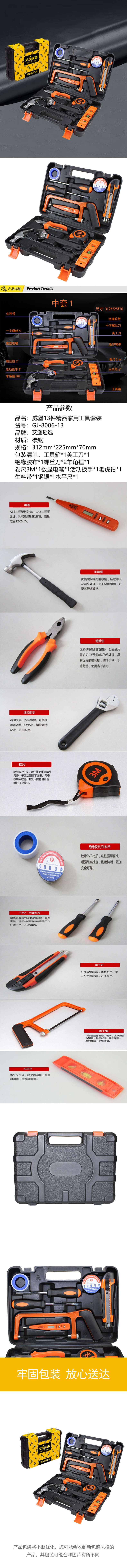 艾逸瑶选 GJ-8006-13 20件套 精品家用工具套装 黑色(单位:套)