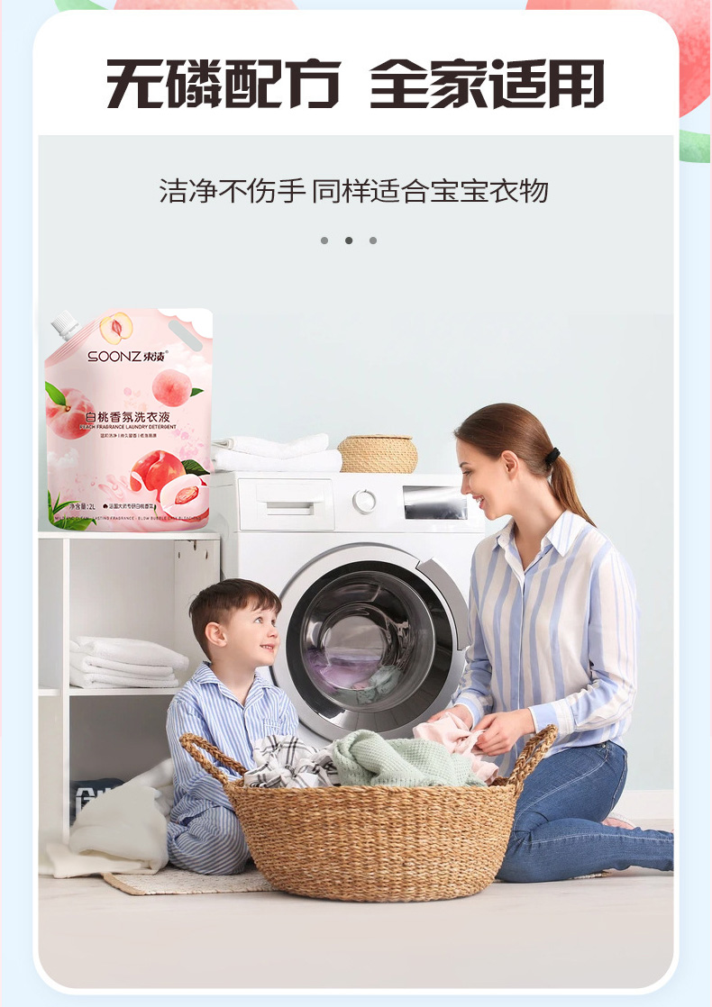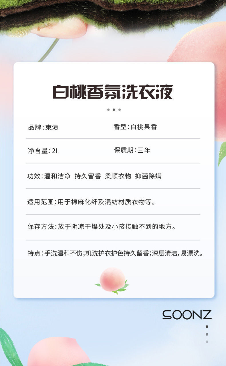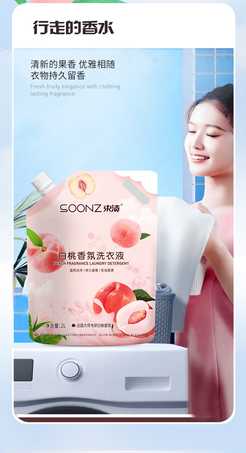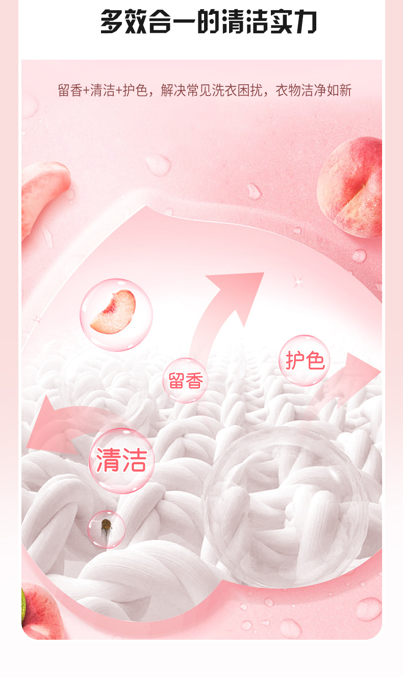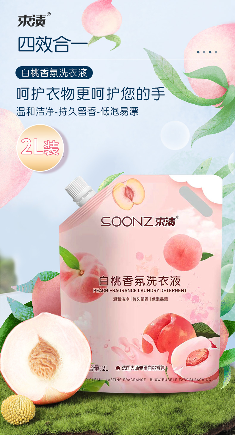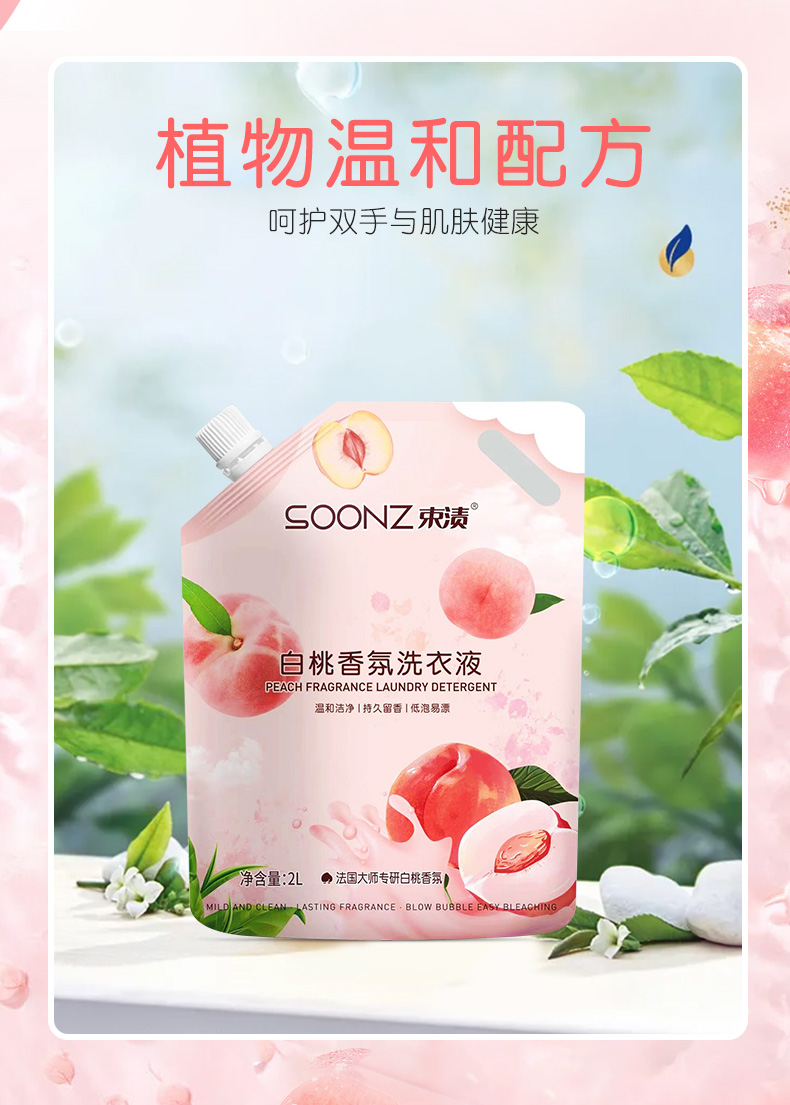 束渍 香甜白桃 2L 白桃香氛洗衣液 粉色(单位:袋)