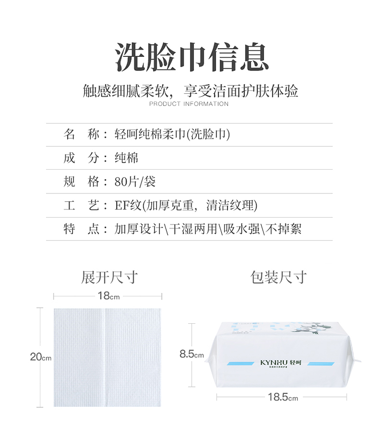 轻呵加厚美容洁面巾,80抽/袋,(棉+植物纤维)80G/平方 MJ-80-D 单位:袋 白色