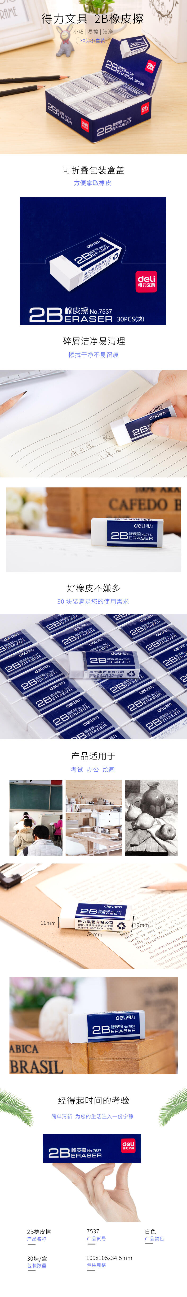 得力(deli) 7537 30块 橡皮擦 白色(单位:盒)