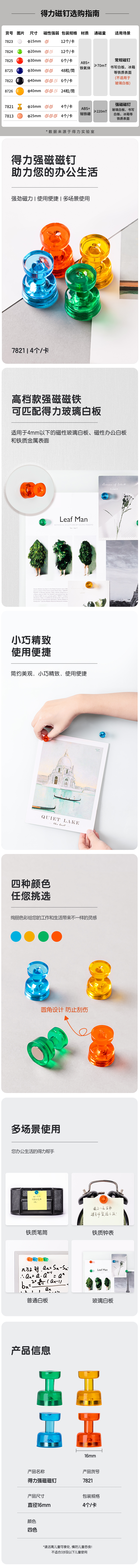 得力(deli) 7821 4个 强磁磁钉 混色(单位:卡)