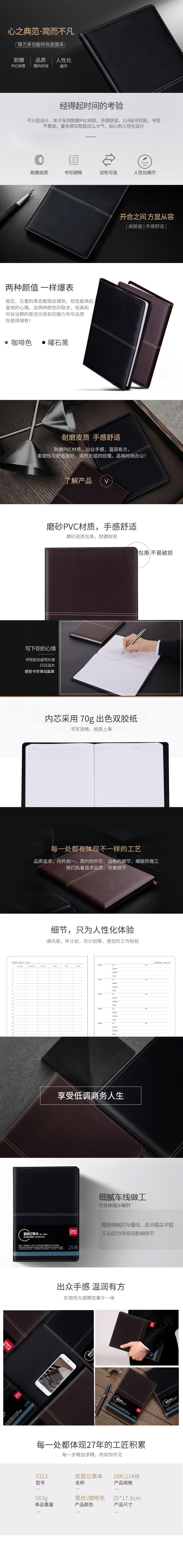 得力(deli) 3324 25K-205mm*143mm-112张 记事本 黑色(单位:本)