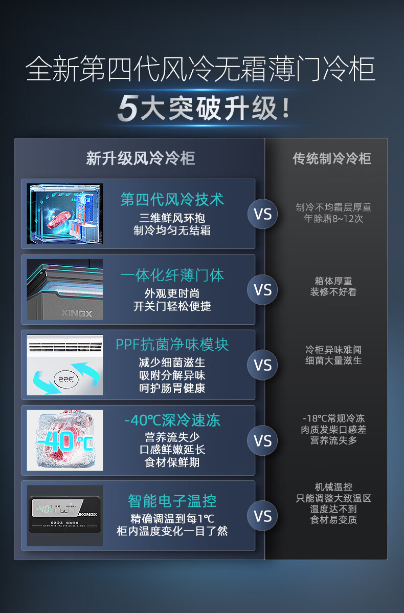 星星(XINGX) BD/BC-180WKA 180L一级能效 风冷无霜薄门冷柜 钢色(单位:台)