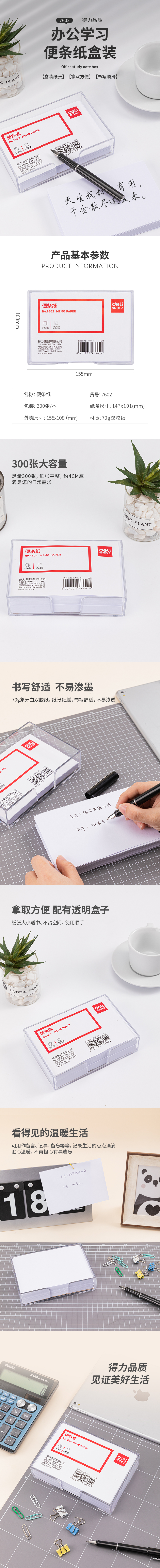 得力(deli) 便条纸带盒 7602 147*101mm 白色(单位:盒)