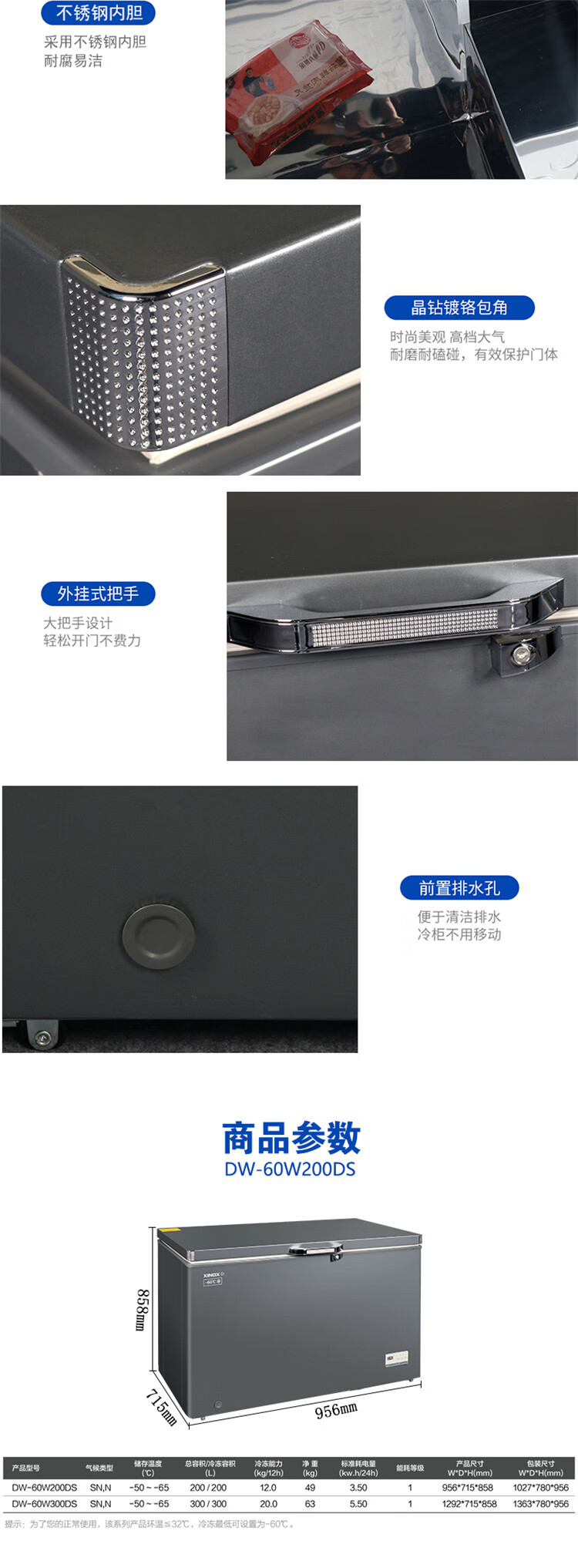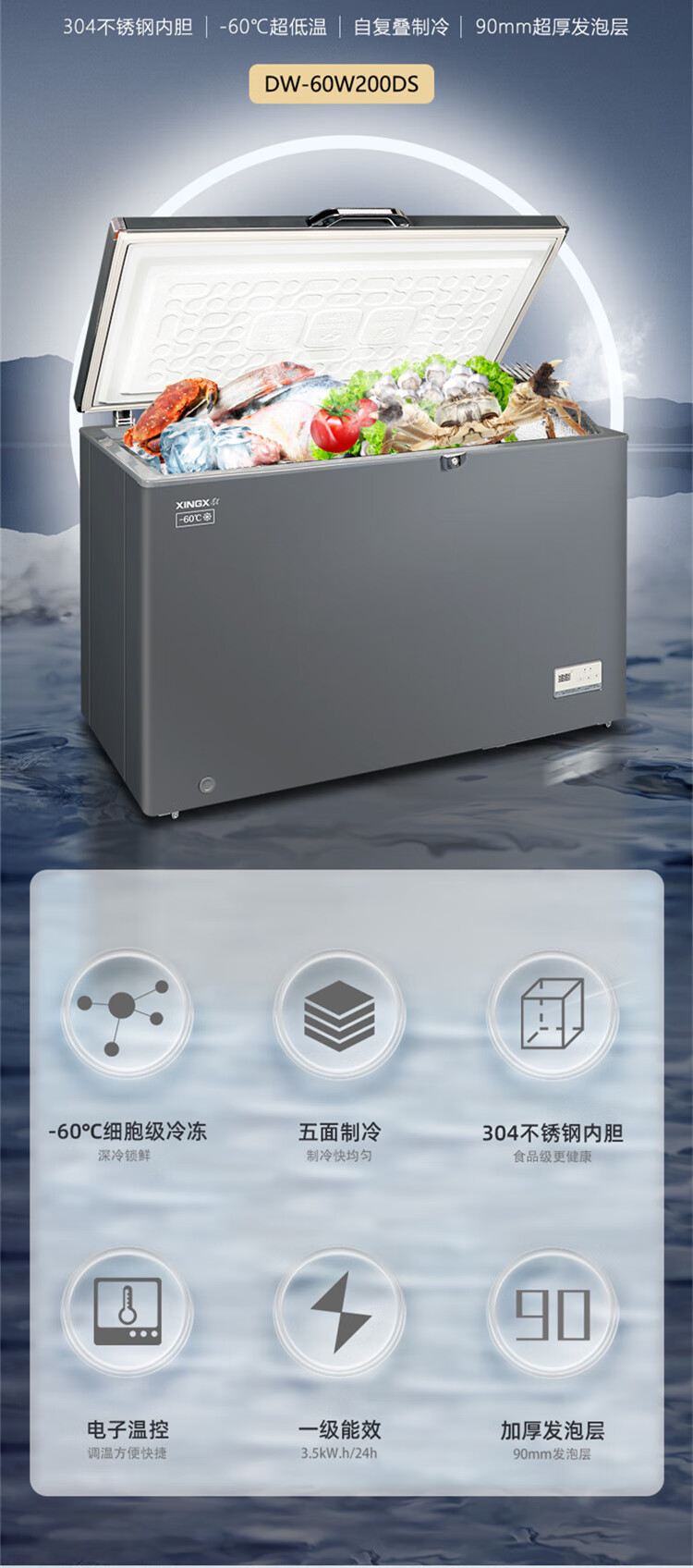 星星(XINGX) DW-60W200DS 200L一级能效 五面制冷304不锈钢 钢色(单位:台)