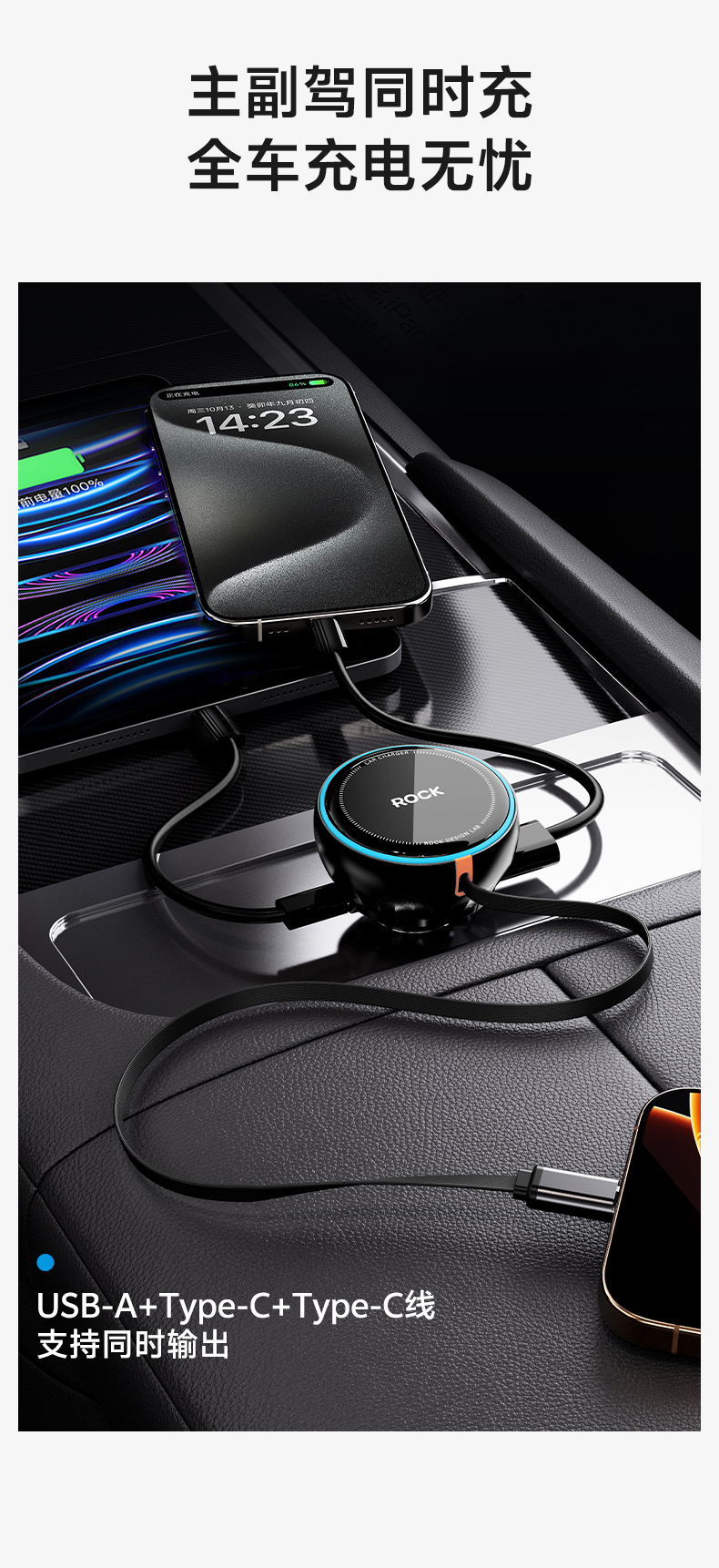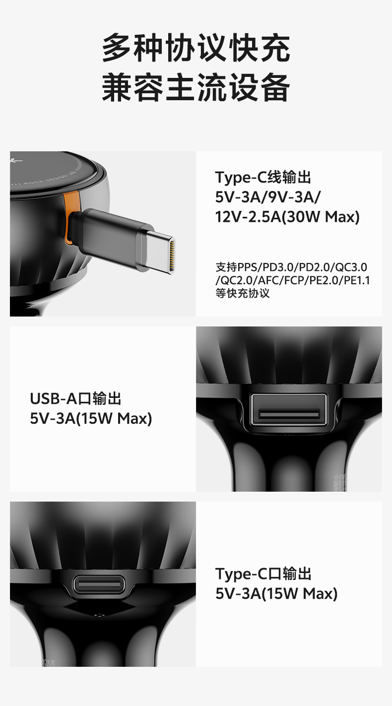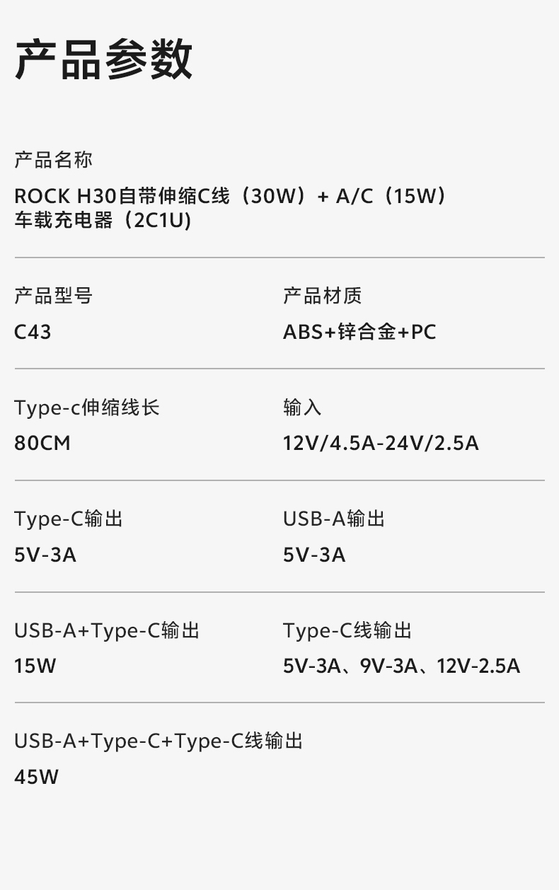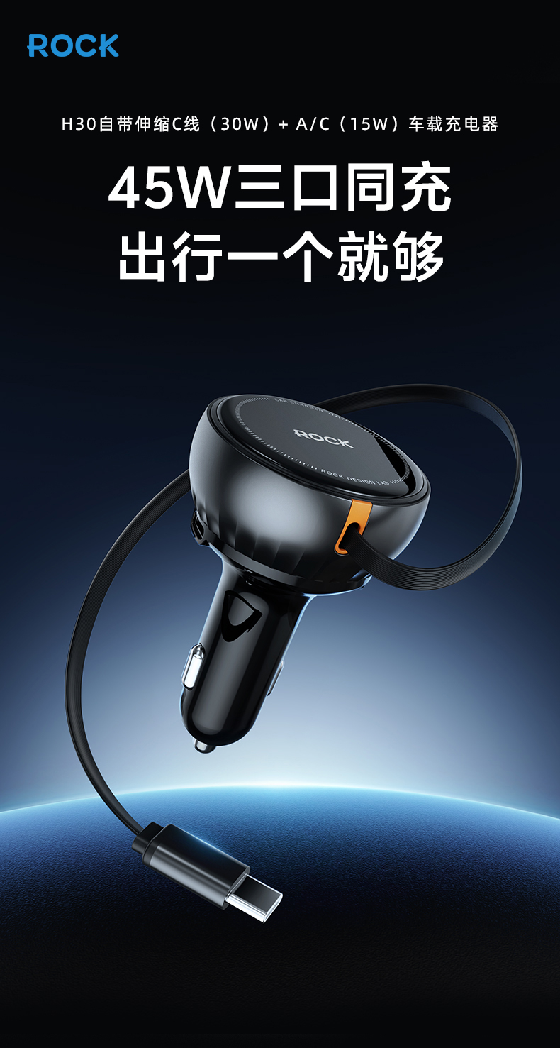 ROCK C43 C线(30W)+A/C(15W) 自带伸缩C线 黑色(单位:个)