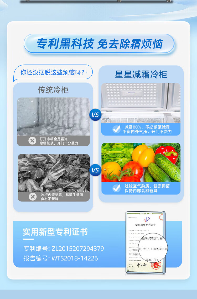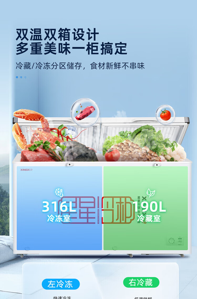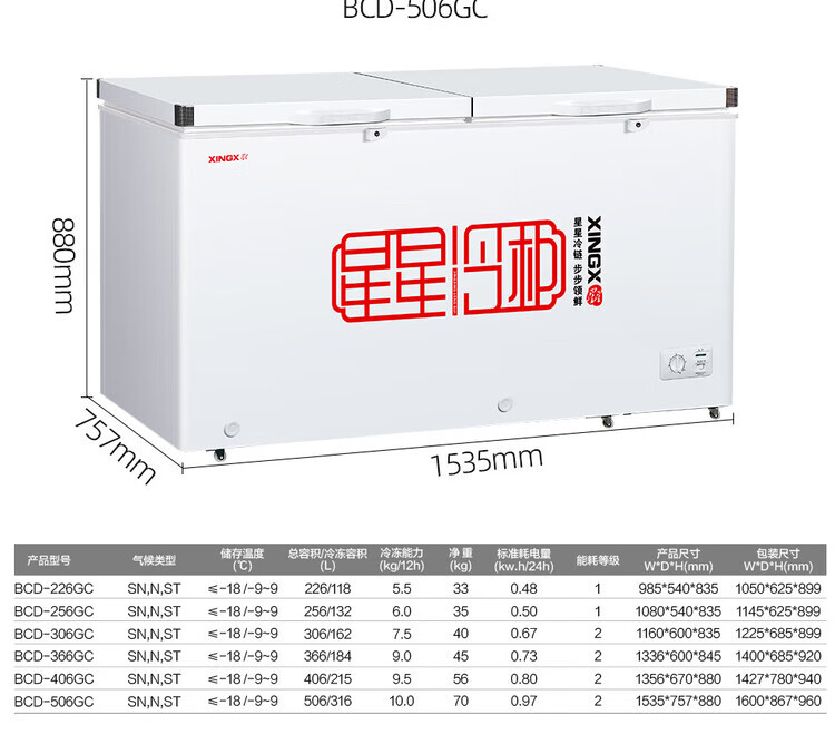 星星(XINGX) BCD-226GC 226L一级能效 可冷藏 可速冻 钢琴白(单位:台)