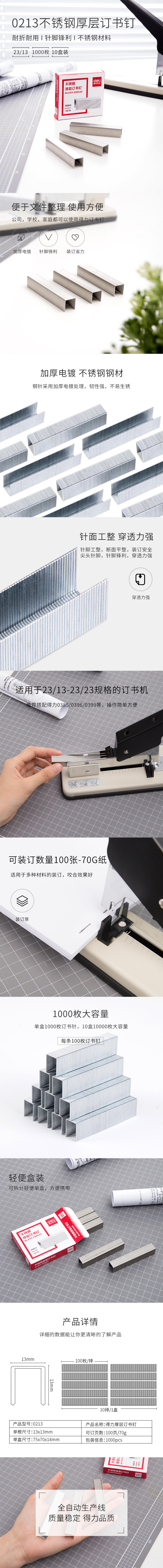 得力(deli) 0213 23/13(1000枚/盒) 5盒 不锈钢厚层订书钉 不锈钢色(单位:盒)