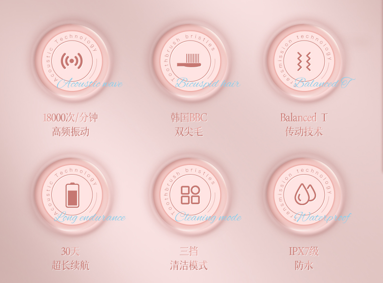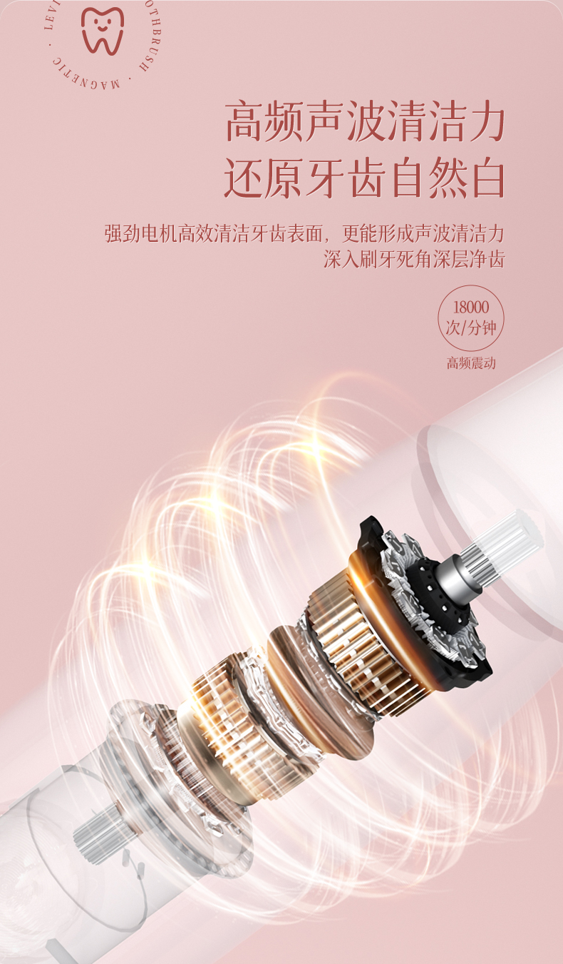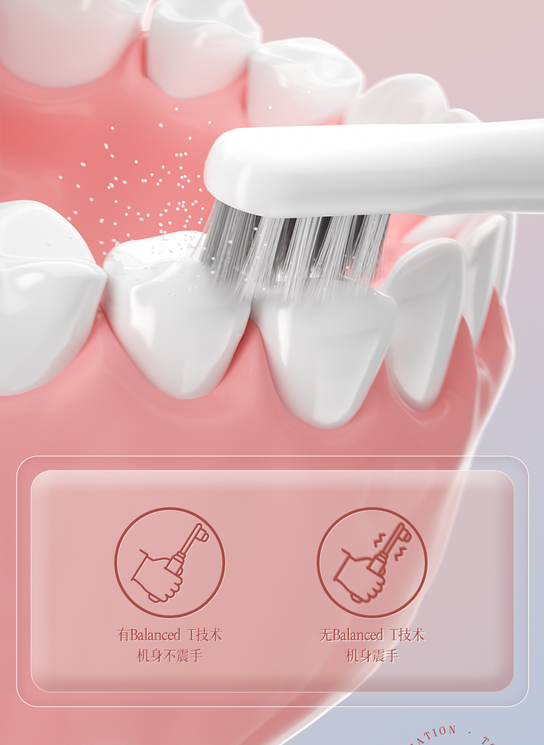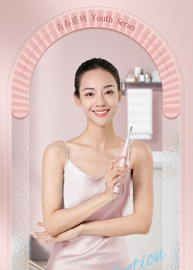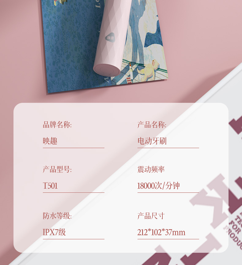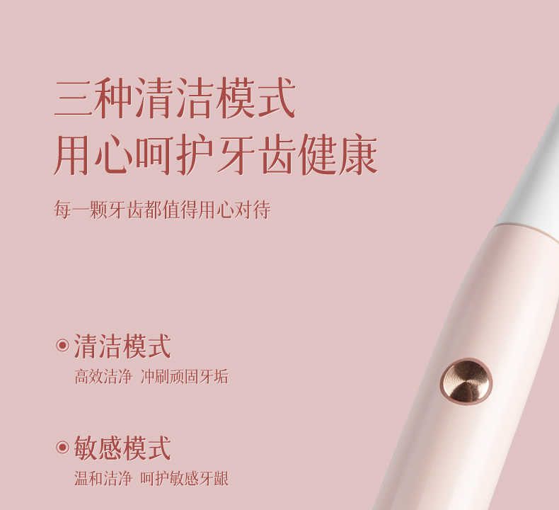 映趣 全身水洗三挡模式调节电动牙刷 T501粉色 软毛 粉色(单位:个)