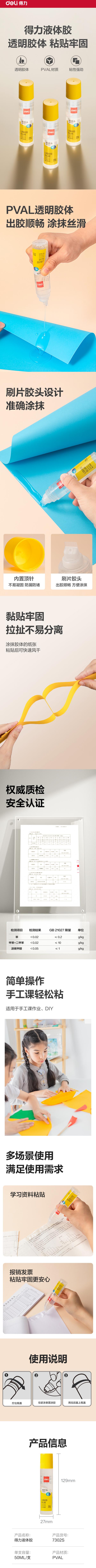 得力(deli) 7302S 24支 50ml/支 刷片液体胶 透明(单位:盒)