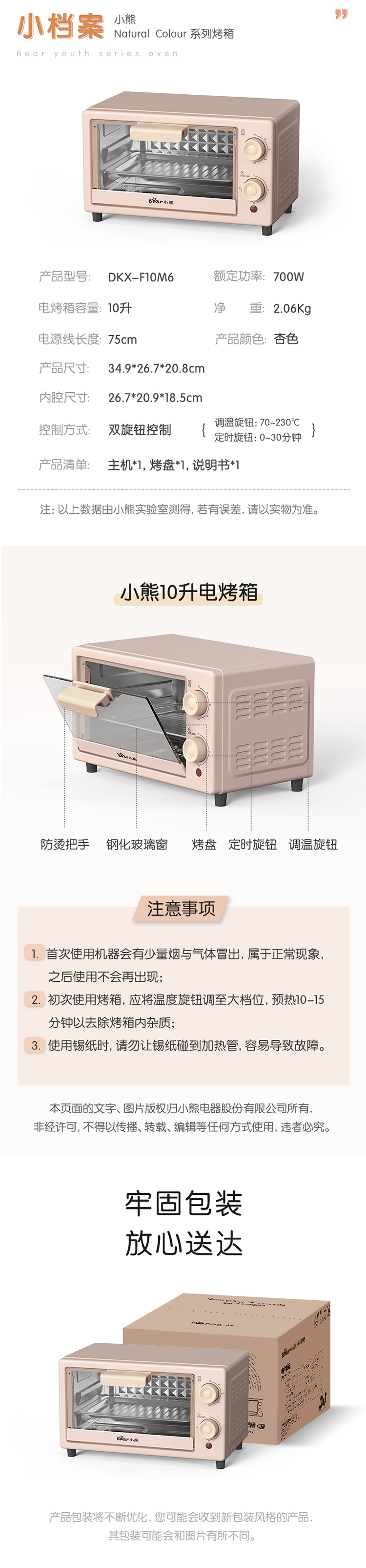 小熊(Bear) DKX-F10M6 10L 10L小容量电烤箱 粉色(单位:台)