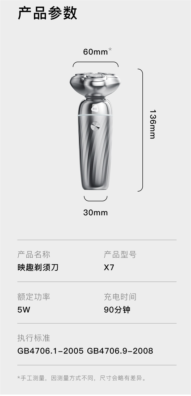 映趣 银翼电动剃须刀 X7 旋转式三刀头 银色(单位:个)