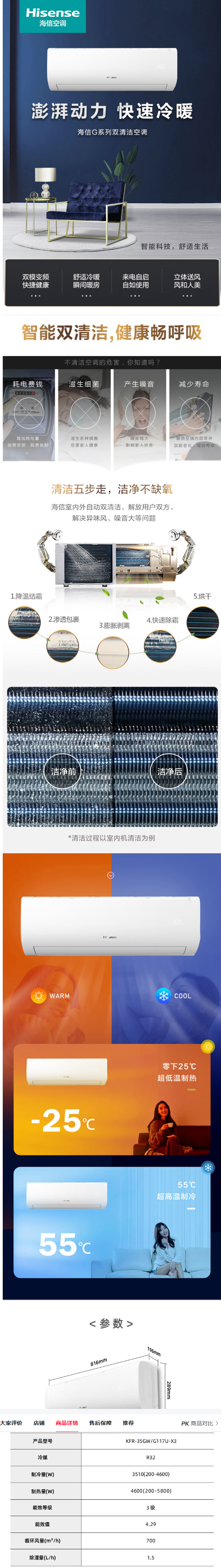 海信(Hisense) KFR-35GW/G117U-X3 宽816mm;高289mm;深196mm 澎湃动力 快速冷暖 本白色(单位:台)