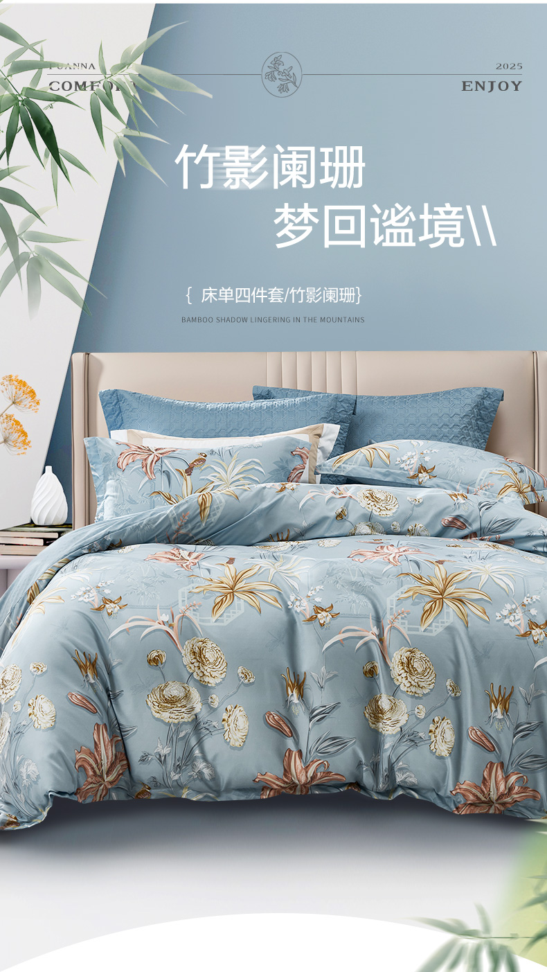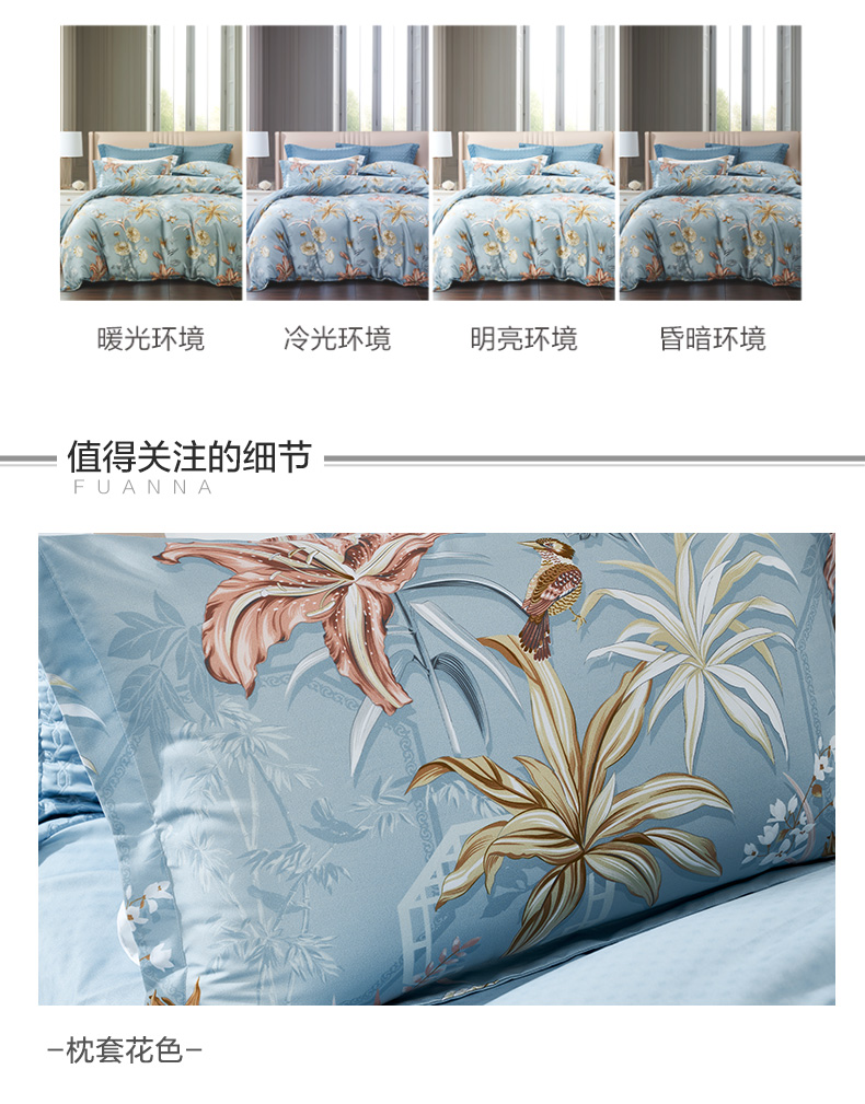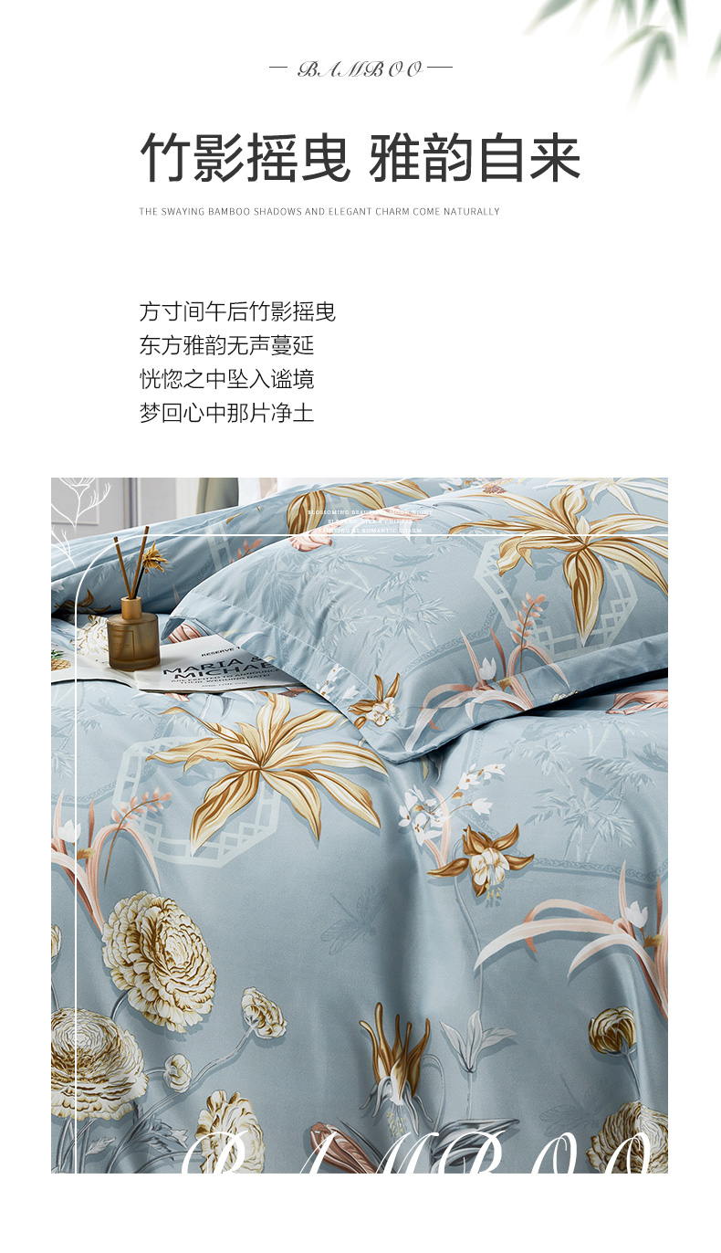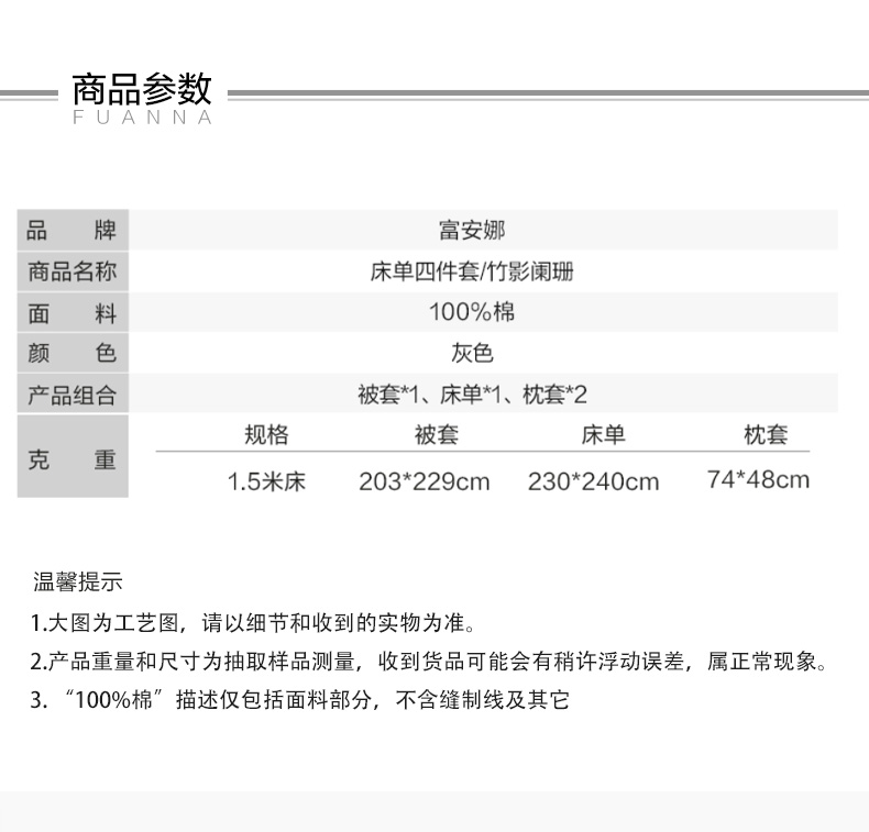 富安娜 全棉床单四件套竹影阑珊 713102675 203*229cm 灰色(单位:套)