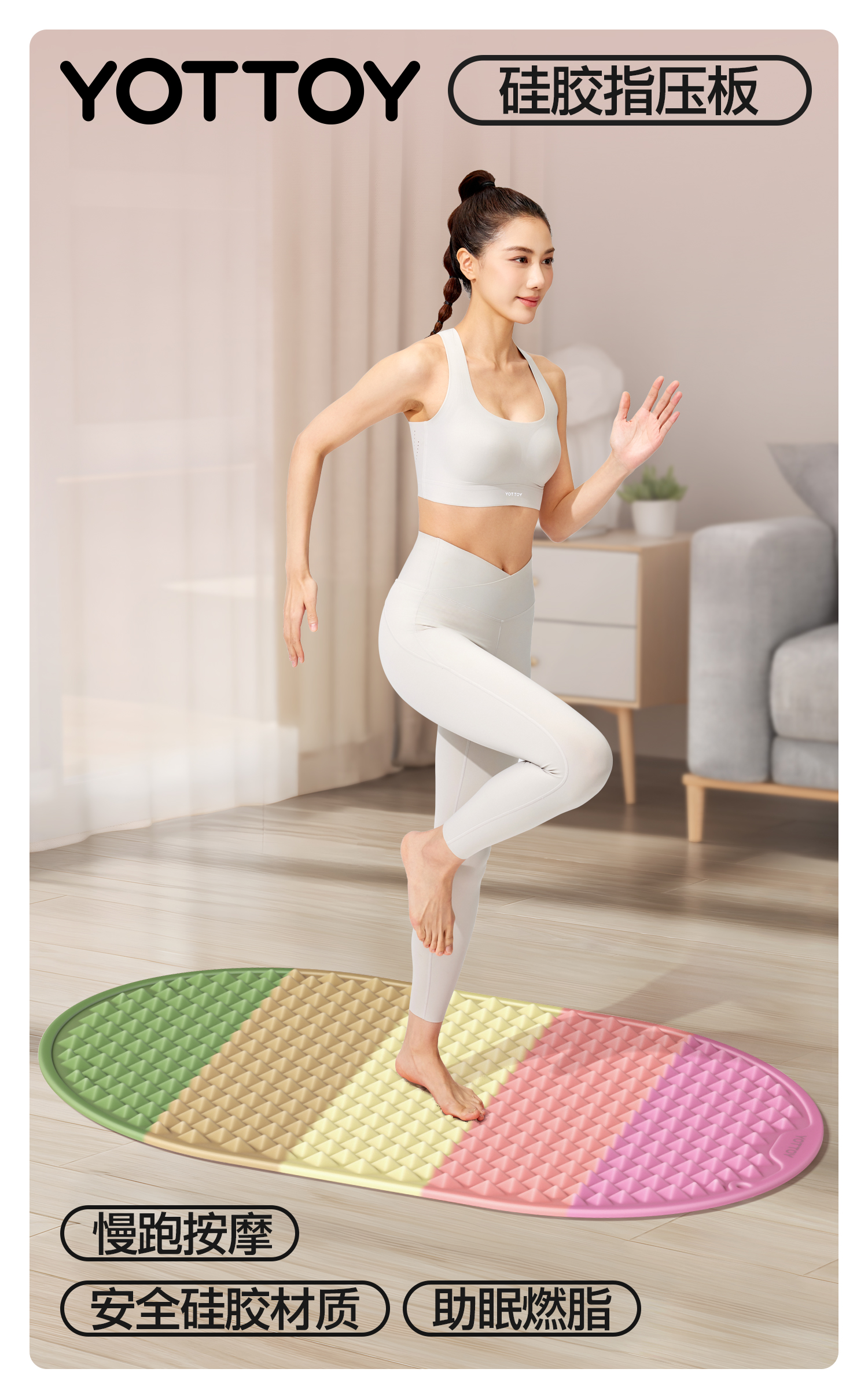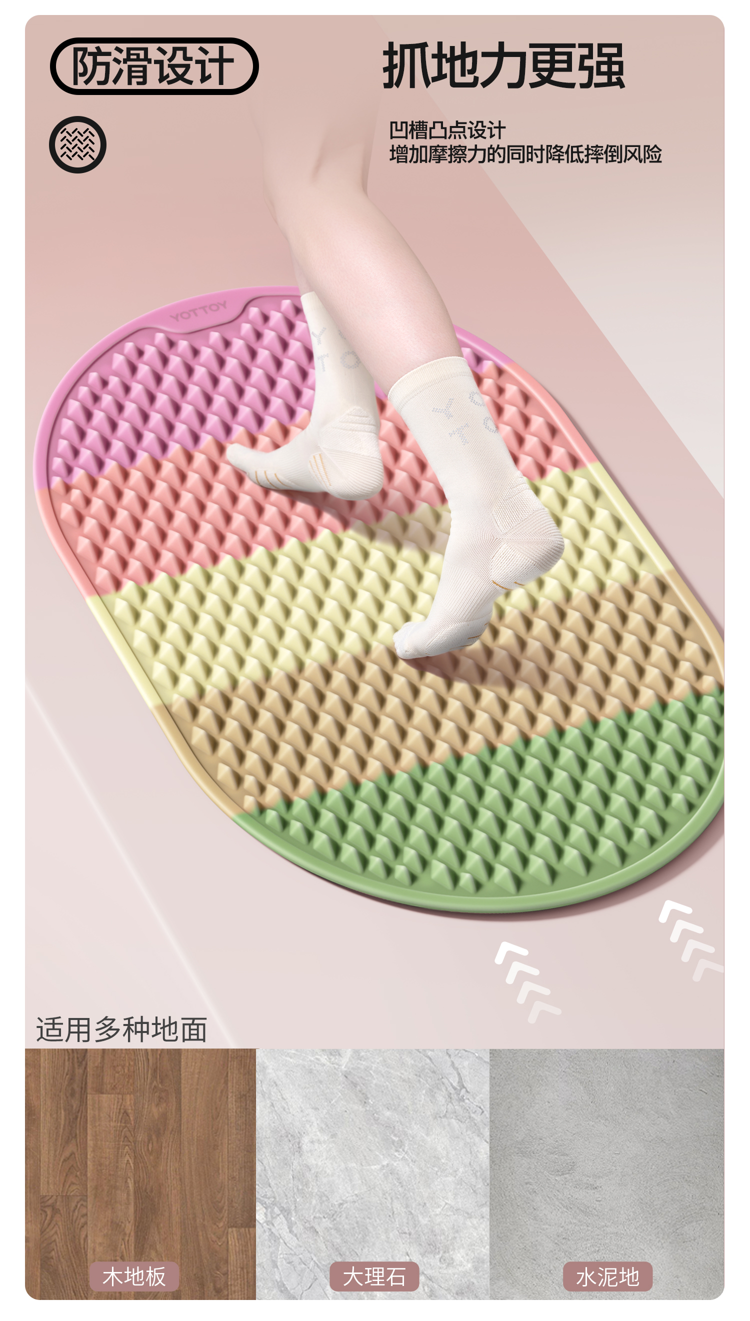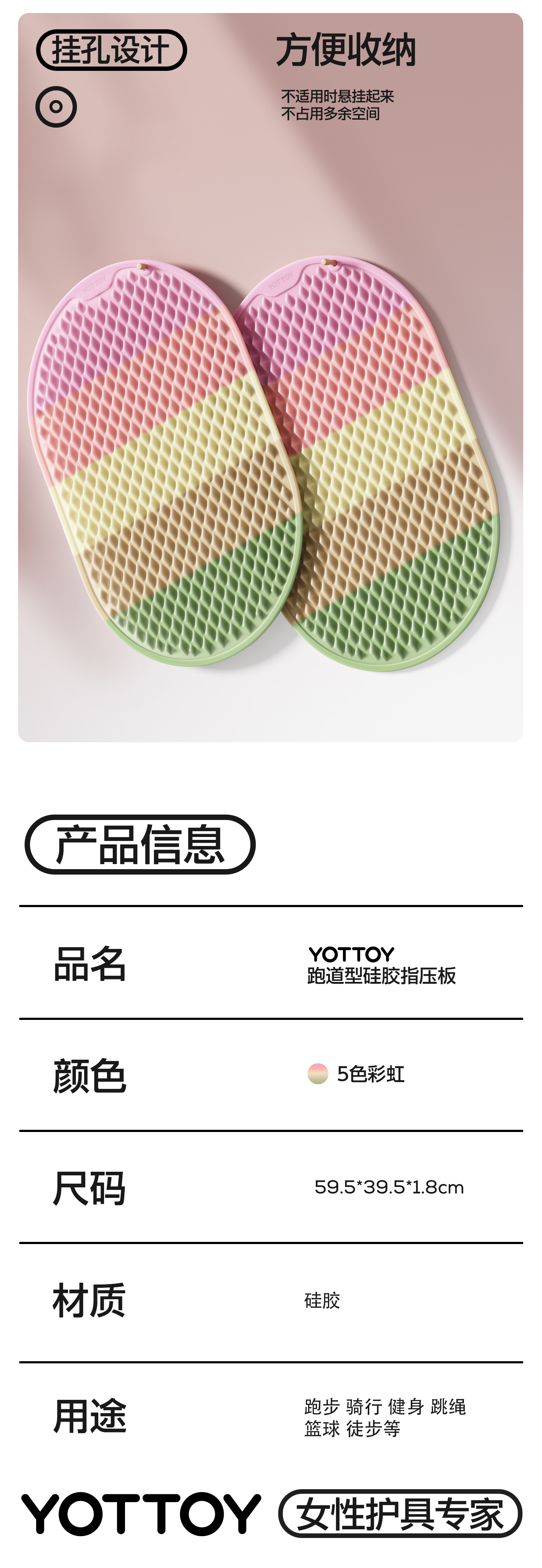 YOTTOY 软硅胶指压板超慢跑足底按摩垫脚垫彩虹色3D amzy2502x4A00018395a002 59.5*39.5*1.8cm 混色(单位:个)