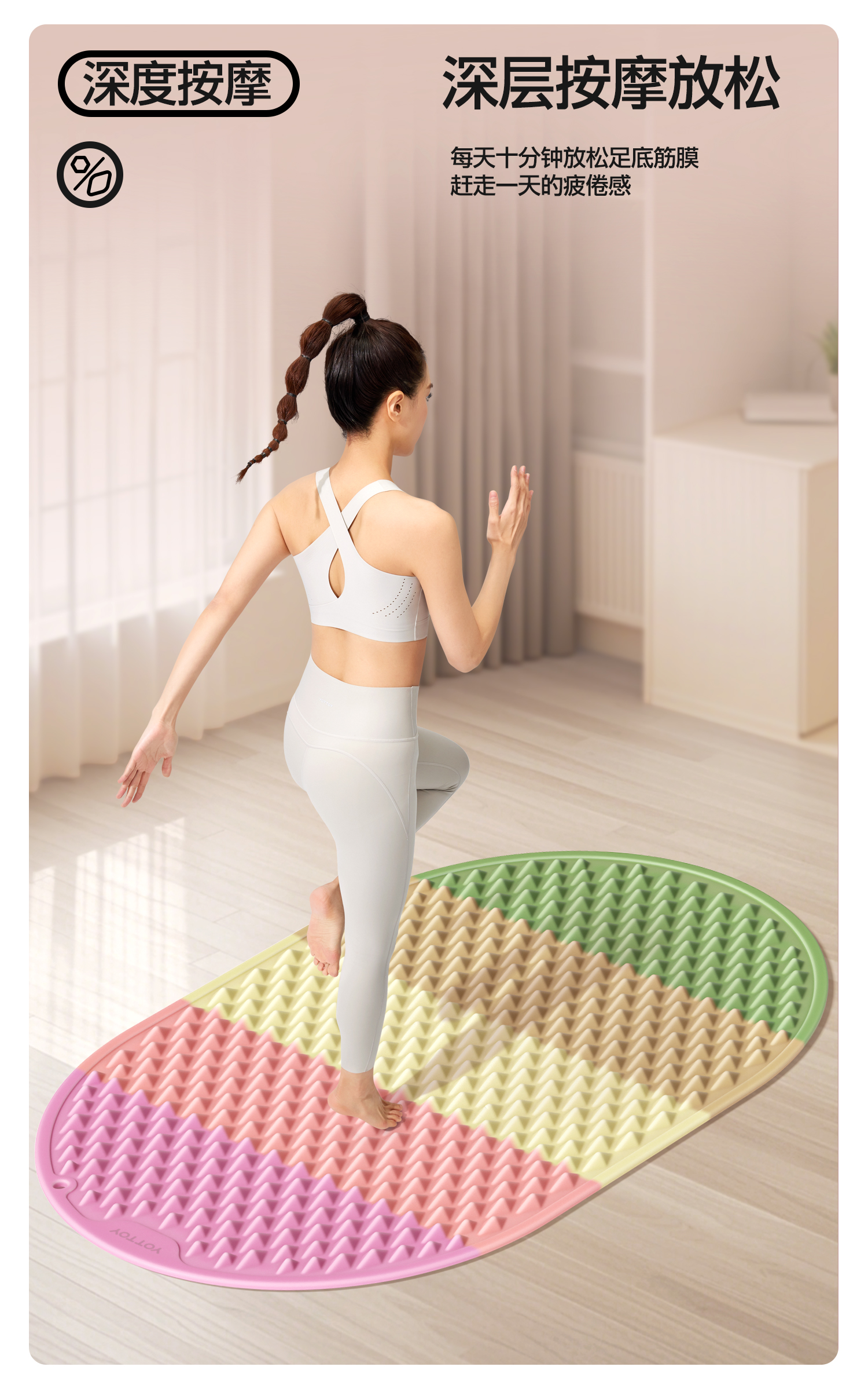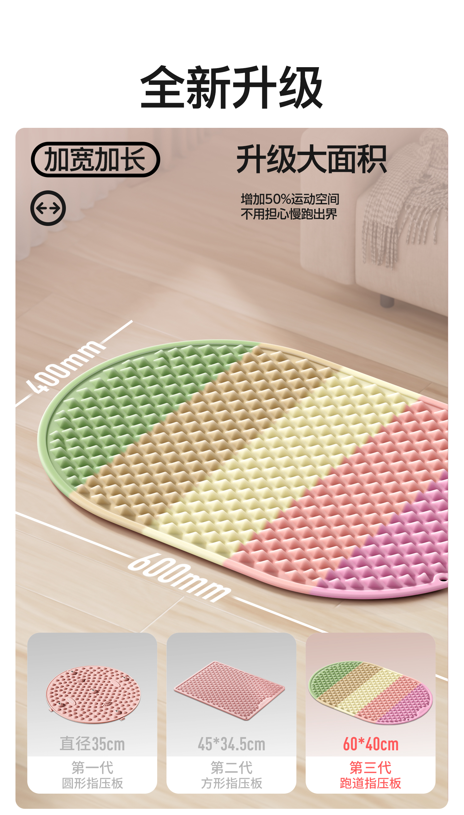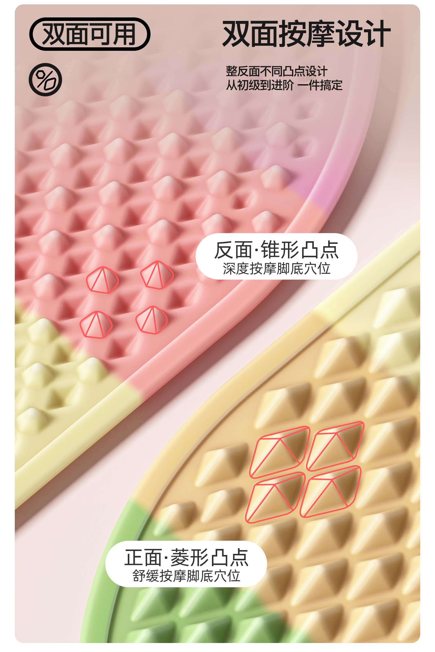 YOTTOY 软硅胶指压板超慢跑足底按摩垫脚垫彩虹色3D amzy2502x4A00018395a002 59.5*39.5*1.8cm 混色(单位:个)