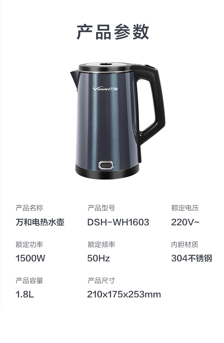 万和(Vanward) 电热水壶 DSH-WH1603 1.8L 蓝色(单位:台)